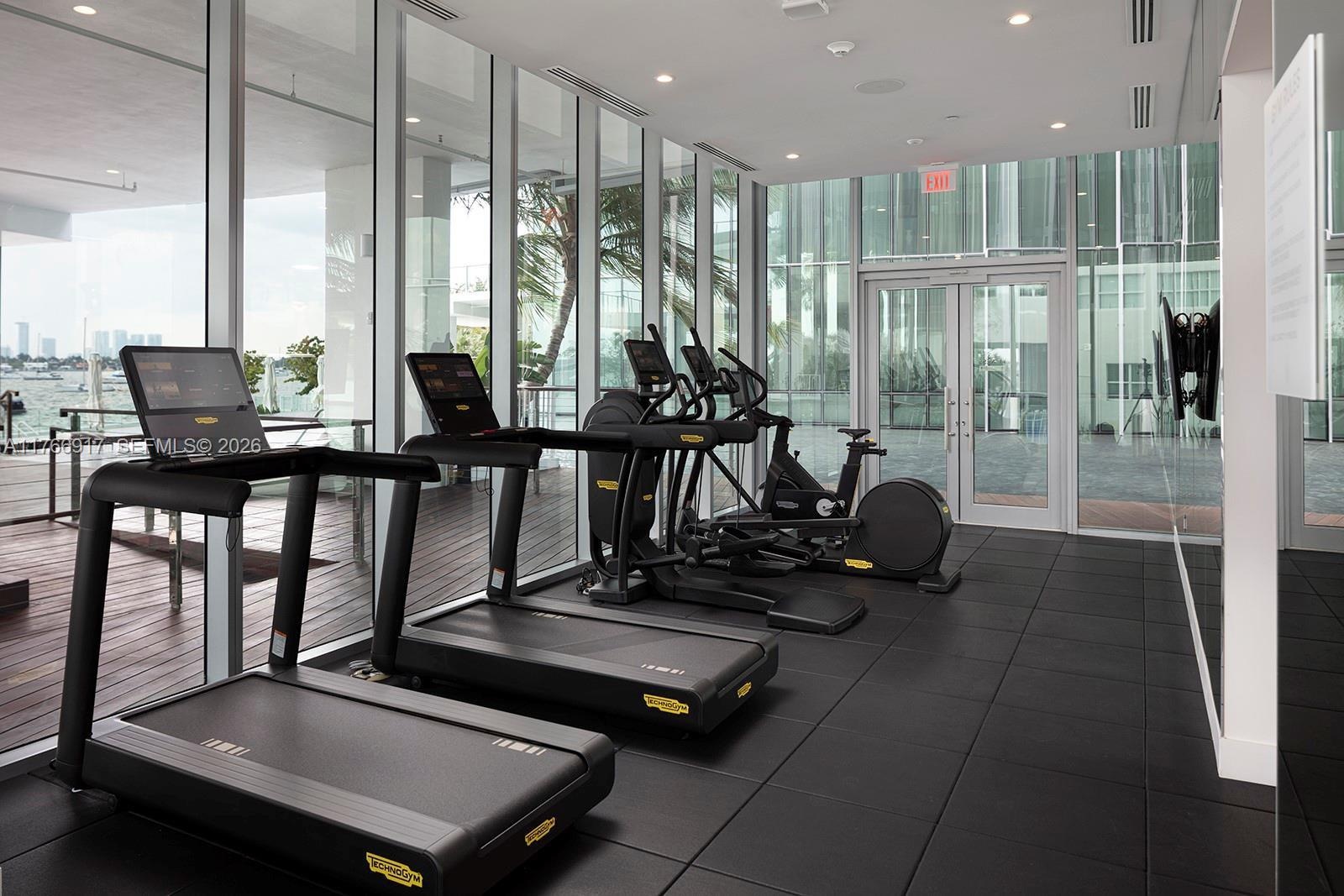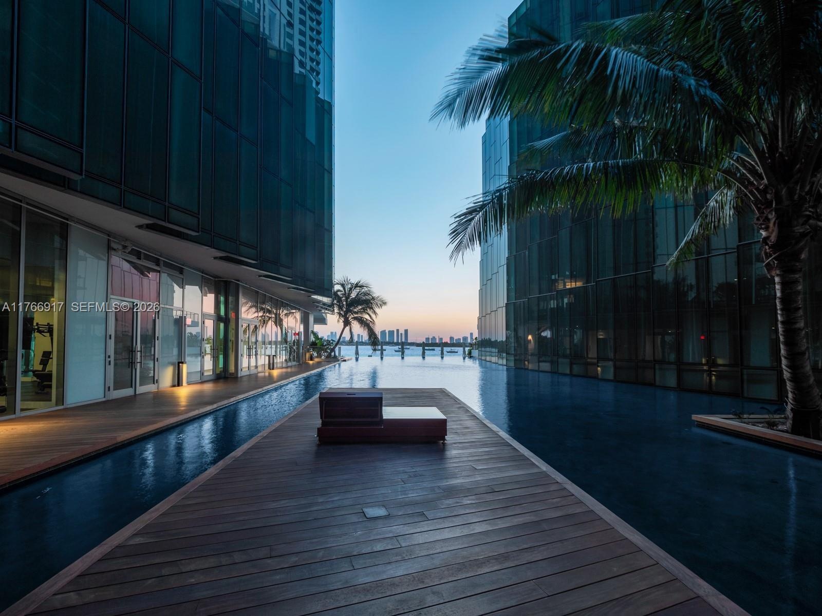MID-CENTURY MINIMALIST INTERIORS BY AUSTIN HARRELSON WITH STUNNING SUNSET VIEWS OVER THE BAY & CITY SKYLINE FROM THIS SPRAWLING 5-BEDROOM RESIDENCE AT MONAD TERRACE BY AWARD-WINNING ARCHITECT JEAN NOUVEL! Flowthru 5 Bed + 5.5 Bath Residence in 3,936 SF wrapped in 1,474 SF Terraces. Private Foyer greets you to Oversized Great Room. Custom Wall-to-Wall Bookcases + 10 FT Ceilings in Elegant Venetian Plaster. Poliform Kitchen in White Calacatta Gold Marble w/Sculptural Cantilevered Marble Island & Wine Rack + Gaggenau Appliances. Custom Oak Breakfast Banquet. Primary Suite w/Bathroom in Calacatta Gold Marble & Floating Wood Vanity + Steam Shower & Ago Soaking Tub by Antonio Lupi. Laundry Room Doubles as Service Quarters. Diagonal Teakwood floors. Private Elevator with Direct Access to Garage.