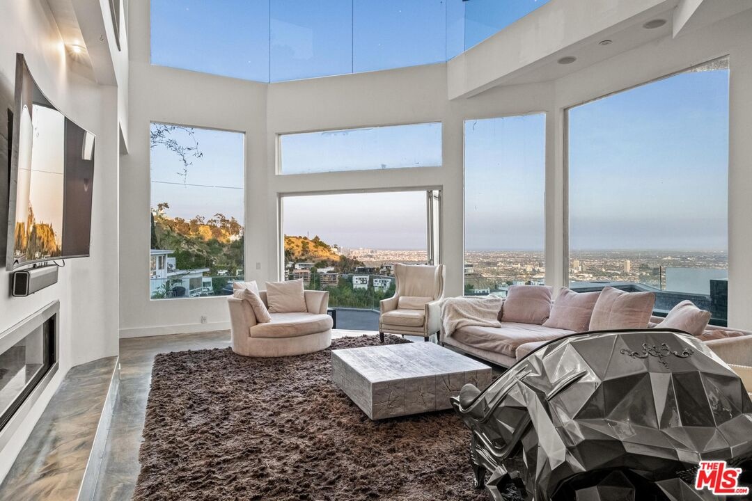 Welcome to "The Sunset Plaza Hub," a dramatic architectural modern perched above the Sunset Strip with sweeping, unobstructed views from Downtown Los Angeles to Beverly Hills and out to Catalina Island. Designed for elevated living and effortless entertaining, the home features soaring ceilings, walls of glass, and an open-concept layout that floods the interiors with natural light. A chef's kitchen anchors the main level, while a state-of-the-art home theater and top-floor primary suite with spa-like bath, private balcony, and cliffside hot tub offer the ultimate in luxury and comfort. The expansive basement level serves as a versatile canvas, ideal for a recording studio, wellness spa, nightclub, or another creative use. With a gated entry, full security system, direct garage access, and close proximity to world-class shopping, dining, and nightlife, this property captures the essence of the LA lifestyle. Proven investment upside with a multi-year short-term rental history generating $400,000+ in verifiable annual income. Creative financing available where the future buyer may take over existing debt at a 2.75% interest rate on $1.615M or a blended 4.6% rate on $2.4M, with the balance of the purchase price to be provided as buyer equity. A rare opportunity for an owner user, 1031 exchange investor, or developer to own one of the city's most compelling view properties with unmatched income potential, all while at one of the lowest price per square foot buy in prices of all inventory in the Sunset Strip.