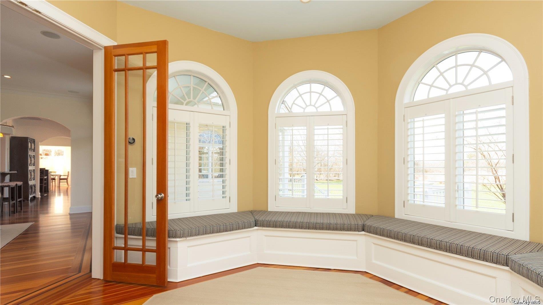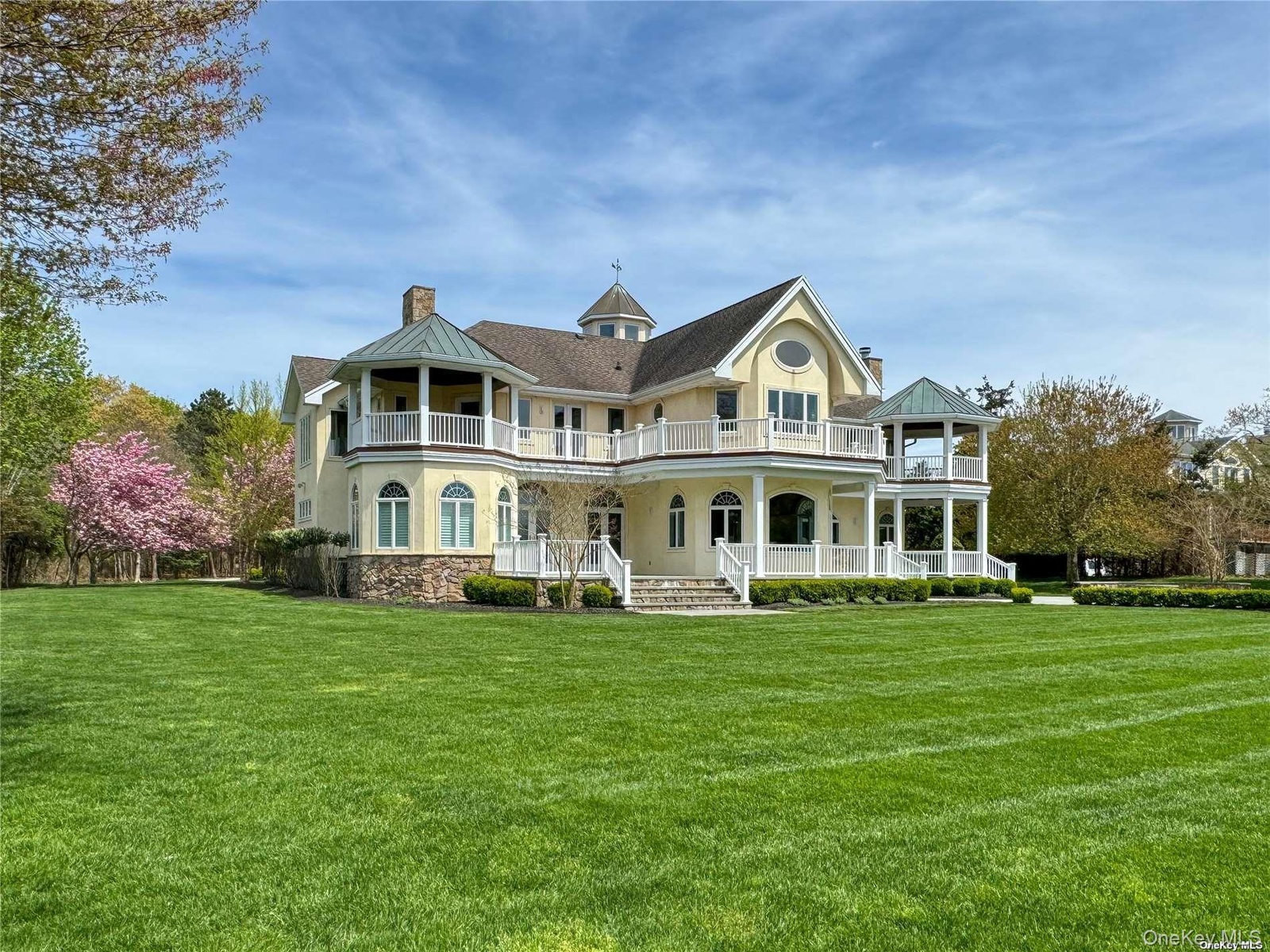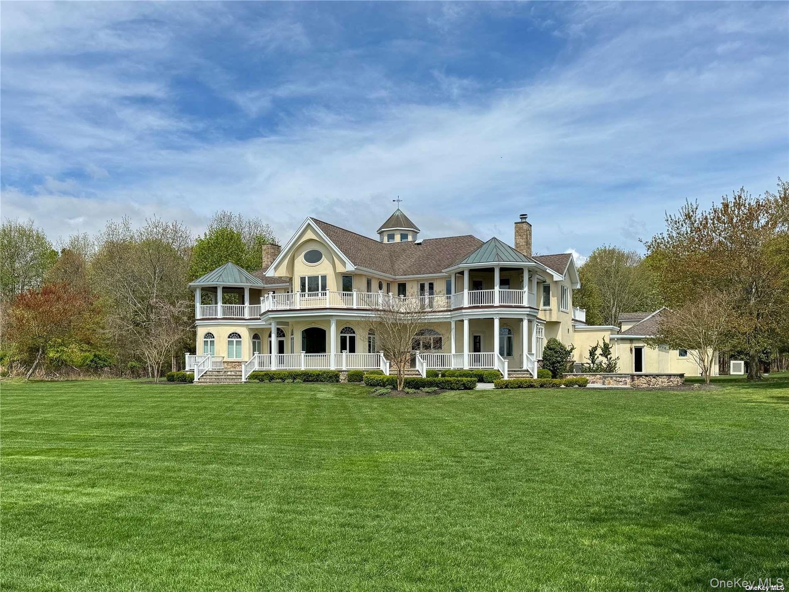 Escape to a serene 4.74-acre waterfront haven in Center Moriches. Tucked 600' from the road, this private estate, built in 2003 seamlessly blends timeless elegance with modern convenience. Traverse the winding wooded drive to the main courtyard where a meticulously crafted over 7000 sqft home awaits. Stepping into the entry foyer you can see clear through to the water. Look straight up 35 feet to the octagon cupola. The main floor, adorned with Douglas fir wood floors, features a living room with fireplace, formal dining room with water views, an inviting octagon conservatory, and chef's dream kitchen boasting a double oven Wolf stove. A gallery hallway leads to the 3 car garage and bonus room with tons of storage. French doors lead to bluestone patio enveloped by acres of private yard, complete with an outdoor cooking area and firepit.