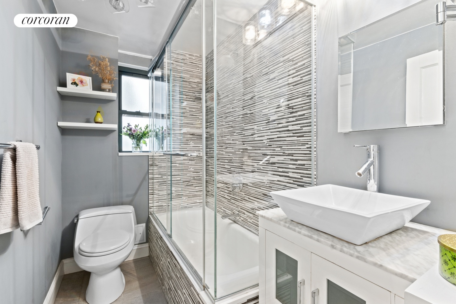 The two full bathrooms are meticulously renovated, with one windowed bath having a beautiful tiled tub/shower and glass fronted vanity, and the other bath having two windows, a stall shower, and an oversized sink and vanity.