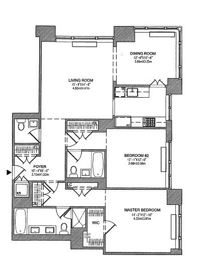 FULLY FURNISHED corner 1,372 SF Two Bedroom Two Bathroom + Powder Room Residence at The Rushmore Condominium! This unit features a great layout with no wasted space, South East exposure with open city and partial river views, true hardwood floor throughout, oversized windows, in-unit washer & dryer, and 5 closets, including a walk-in closet. The gourmet windowed kitchen features granite and stone countertops, a Sub-zero fridge, Miele appliances and is conveniently situated next to the spacious dining area overlooking a lush green park. The apartment offers two bedrooms and two full marble bathrooms, plus a powder room; the en-suite master bathroom has both a bathtub and a shower.