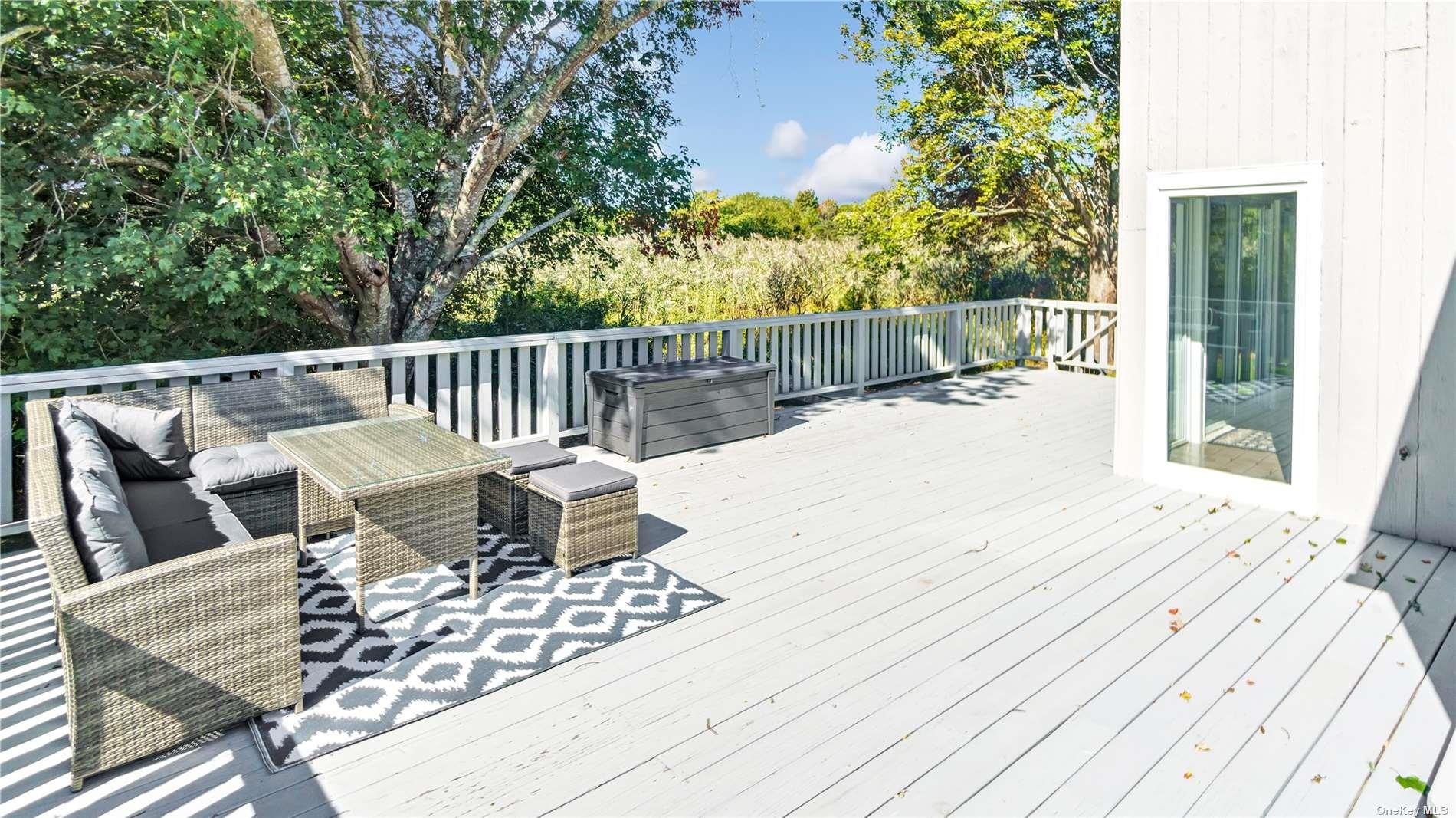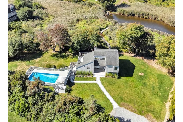 Situated in the quaint hamlet of Remsenburg on charming south of the highway Rogers Lane, this fully furnished home is privately nestled on a 1.39 acre waterfront property and completely renovated. The home offers an airy double-height living room with a new propane fireplace, open floor plan, 4 bedrooms, and 2.5 baths. Sliders in the living room and the dining room lead out to the sunny, spacious deck with inground heated pool, Weber grill, outdoor furniture and gorgeous views of the backyard oasis. Enjoy your own private cat walk to the water. 90 minutes from NYC, 10 minutes to village shopping, dining and beautiful beaches. Available MD-LD $90k, June 20k, July 35k, or August 40k. Also available for off season and year round rentals.