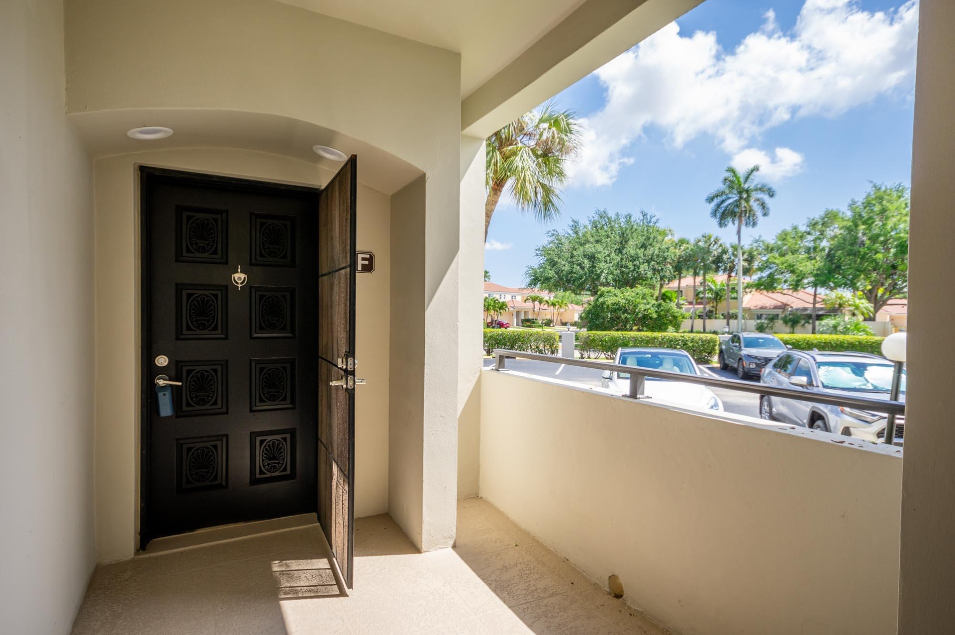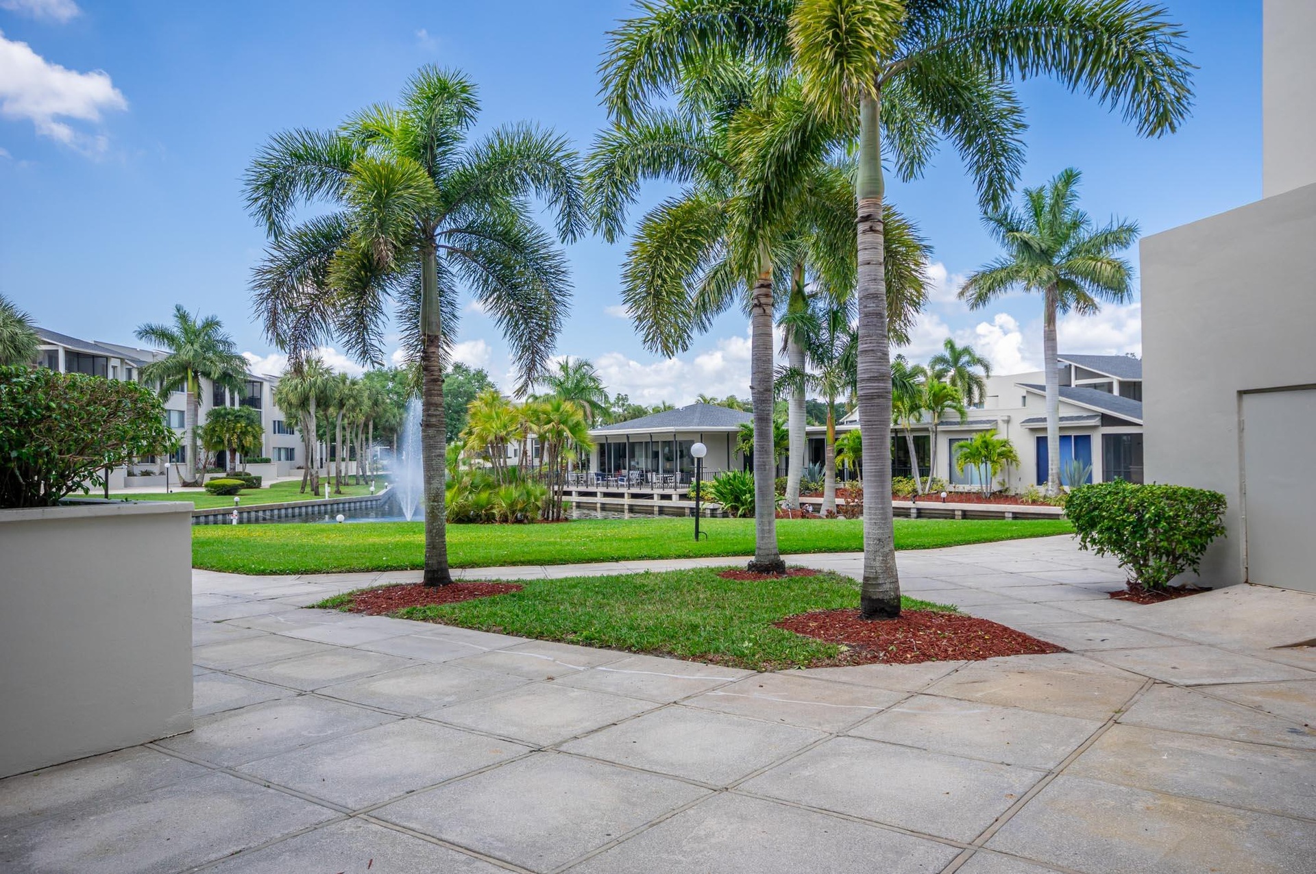 Welcome to this first-floor largest model 2BR/2BA condo located in the prestigious Longwood community. This condo features a pretty foyer with ceramic tile flooring and a decorative tile inlay to greet your guests. The kitchen features white wood cabinetry, tile countertops, and new luxury vinyl flooring. The living & dining rooms are very spacious with neutral carpeting and paint, and sliding glass doors that open to your beautiful and private wraparound screened porch overlooking water and plush garden views. The primary bedroom is very large with carpeting and sweeping palms to enjoy every day. Both bathrooms have been updated with new fixtures and vanities with granite countertops and tile flooring. This condo is light and bright, and the location is prime.