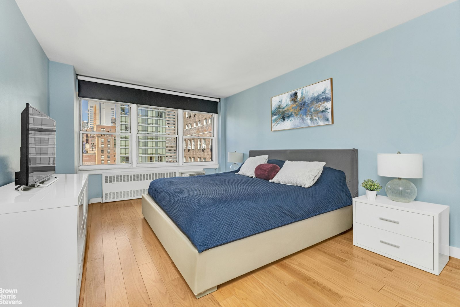 This stunning 1-bedroom condo offers an exceptional living experience in the heart of New York City. Perched on the 16th floor of a sought-after building just off Third Avenue, the 746-square-foot apartment boasts breathtaking views of the Empire State Building and picturesque cityscape sunsets. Notably, its high floor position facing away from the avenue ensures a surprisingly quiet retreat amidst the bustling city.