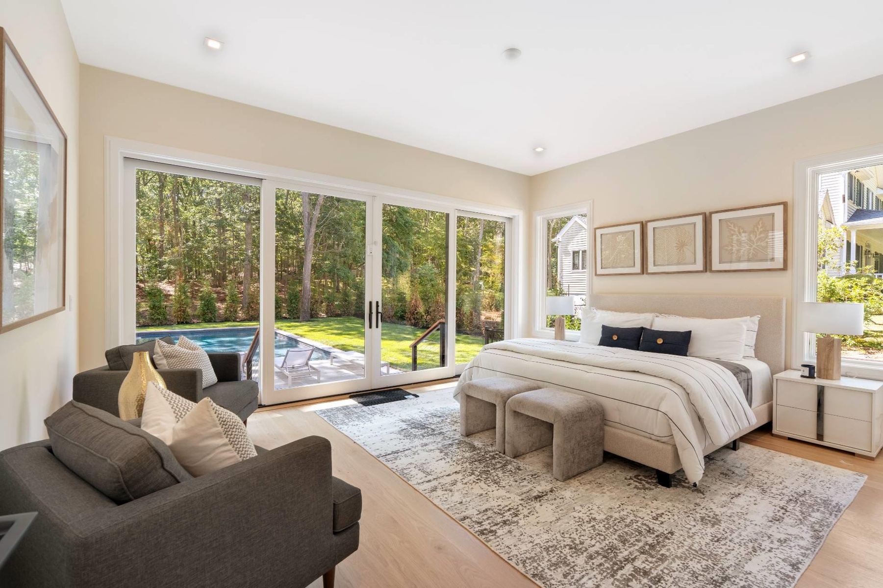 Nestled on a serene cul-de-sac lane in Sag Harbor, this stunning modern home just completed! Just moments away from the picturesque Long Beach, the vibrant Sag Harbor Village with its incredible amenities, and the charming villages of Bridgehampton and East Hampton, this residence offers the perfect blend of tranquility, convenience, and new construction. Spanning 0.99+/- acres, the property features a heated gunite pool, fantastic outdoor lounging areas, outdoor kitchen, outdoor shower, and a well-designed landscape creating a relaxing outdoor oasis. The home itself features a total of 6 bedrooms, 5 full bathrooms, and 1 half bath, encompassing approximately 5,824 square feet of exquisite interior space, including a finished walkout lower level. The first floor is designed for both comfort and entertaining, with the foyer flowing into the open-concept floor plan including a living room, dining room, and a stunning designer kitchen. The kitchen is serviced by a substantial butler's pantry. Additionally, the first floor includes two bedrooms, a full bath, and a half bath, offering convenience and privacy for guests. On the second floor, the spacious primary bedroom serves as a luxurious retreat, accompanied by two en-suite bedrooms. An additional loft space on this floor is a perfect, cozy sitting area. The fully finished lower level adds even more versatility to the home, featuring another bedroom, a full bath, and bonus room (well suited as either a bedroom or gym). This level also includes an expansive laundry room, a family room, and access to the garage.