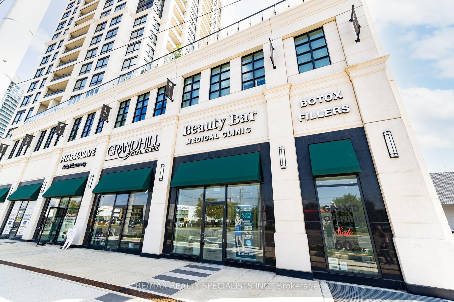 *** Vacant Possession is Now Available to the End Users *** Newer Commercial Condo Unit Located At The Ground Floor Of A Luxury Highrise Residential Condo Building built in 2022. This End Unit Features 23' Foot Ceilings *** Approx 2277 Square Feet *** Beautiful High End Upgraded Finished Ground Floor Commercial Condo Unit. *** Sunny and Bright End Unit with Stunning Direct Yonge Street Exposure, 2 Blocks North of Steeles Ave *** 12 Feet Ceiling Height is Completed featuring Soundproofing, Expensive tiles flooring Glass Accents 10-Feet Doors. Owners invested over $900,000 into this Unit for Renovation / Leasehold Improvements. *** Unit Back Door Exit in Kitchen Area Access to Building Complex Service Corridor / Garbage Room / Exit to Back of the Building etc *** 2 Underground Parking Spots Included A17 & A18. *** Zoning allows many types of Commercial / Retail / Office / Service Uses, Dental Clinic, Medical Clinic, Doctor Office, chiropractic & physiotherapy clinic etc. *** Leed Gold Building, Top Of Line Building Systems Providing Optimal Circulation, Cleanliness And Quality Of Life For Owners, Visitors And Residents Of Condominium Above. Immediate Access From 3/4 Acre Public Park And Busy Yonge Street Intersection *** Plenty of Street Parking Available on Grandview Ave and Nearby *** If Buyer is End User, Vacant Possession can be Provided *** If Buyer is Investors, Seller / Owner with Money Making Successful Medical Spa Business is Willing to Lease Back 5 Years + 5 Years Option. *** Current Setup is a Medical Spa with Open Spacious Reception Area, Client Waiting Area, Consultation room, Multiple Treatment Rooms, A Large Meeting / Conference / Training Room, Spacious Kitchen Area, Large Unisex Washroom *** Legal Description: YRSCP 1496 LEVEL 1 UNIT 1, Property Address: 7097 YONGE ST SUITE 101 THORNHILL, ONTARIO L3T 0H1, PIN 300280001 ***