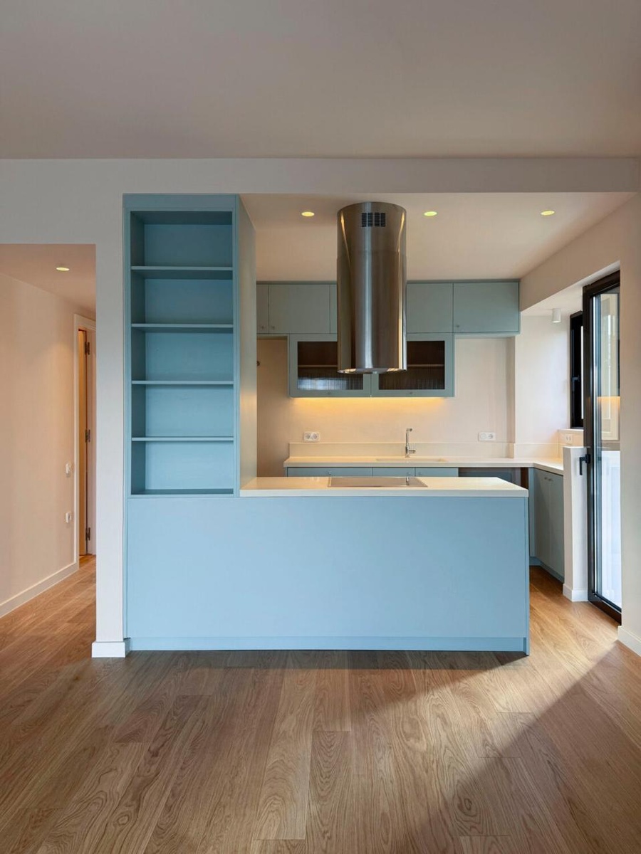 Just finished a meticulous renovation, the apartment has been intelligently reimagined to make the most of every square meter. Its smart layout integrates discreet storage solutions, fluid living space, and a bright, airy ambience. The interior includes one spacious bedroom (14m), a stylish main bathroom, a guest W.C., and a sunlit living area connected to a contemporary open-plan kitchen. There are two big balconies, one in front (18.20m) and one in the back (8.60m) and on the side for additional convenience there is also a smaller size balcony.