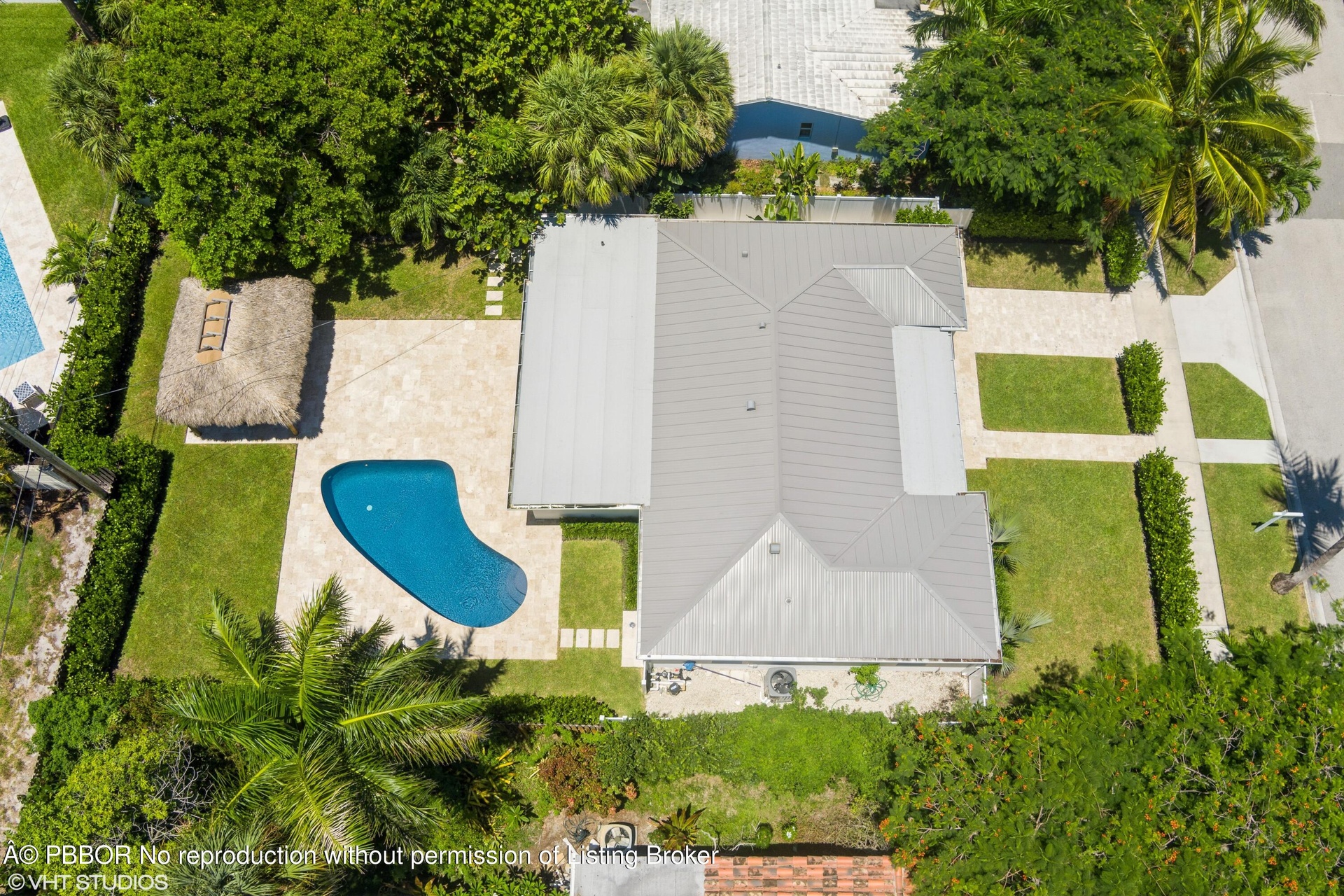 This fresh chic and spacious mid-century modern home located in the heart of Historic College Park has been updated to meet the needs of today's owners. This move in ready home with high end finishes offers a new kitchen with custom cabinets, unique wall pantry and all new GE CAFE Premium appliances. New White Oak hardwood floors throughout guarantees the consistency and feel expected in a home of this level of finish. The living room is easily large enough to accommodate multiple sitting areas and space for today's media entertainment. The new primary and guest bathroom have custom cabinets. The private primary bedroom looks out to the deep 120' lot to the new TIKI HUT 15' X 12' & pool offering a special feeling of privacy. House located in Zone X500 Low Risk of Flood A new metal roof was added in 2024 as well as new fencing and Clusia Hedges landscaping around the perimeter of the property. There is a new Child/Baby fence stored in the garage. The outdoor shower has hot and cold running water. A new pool pump was added in September 2024