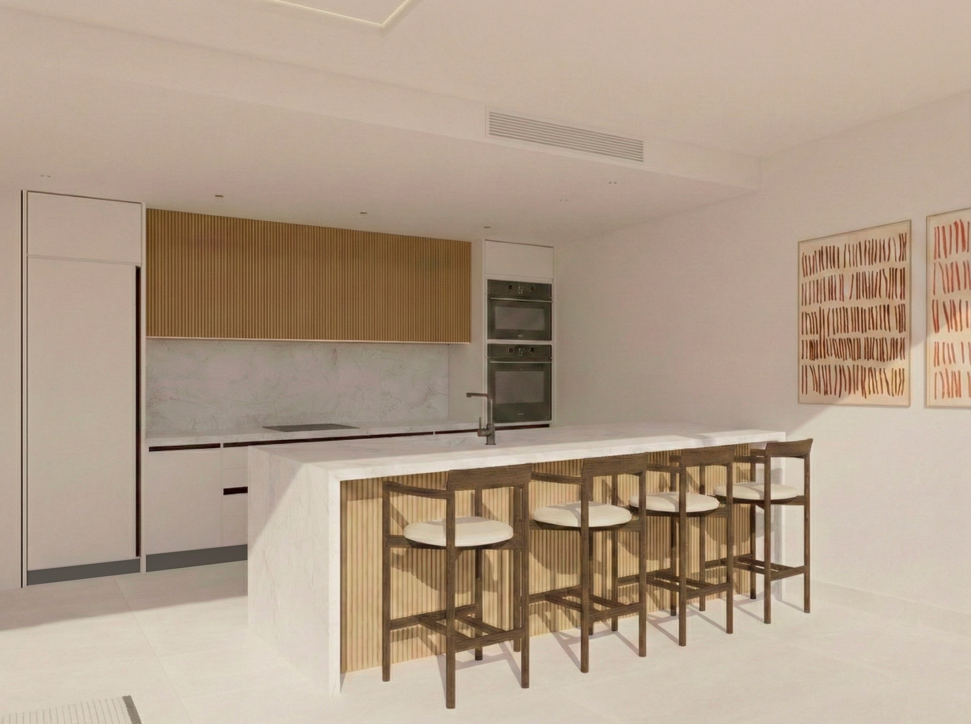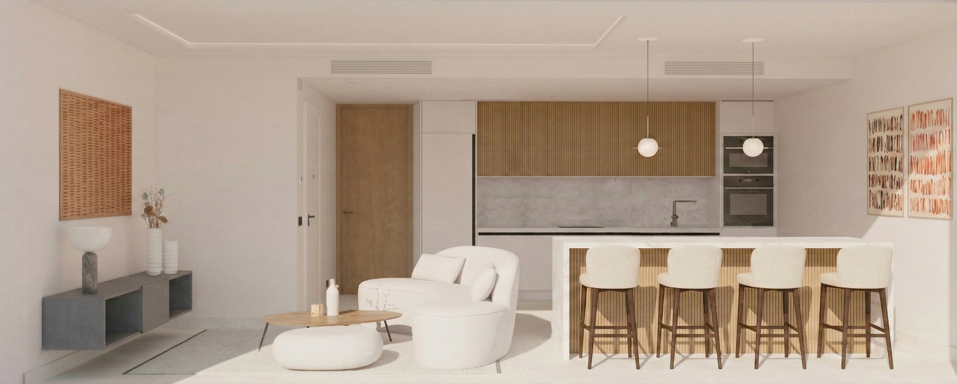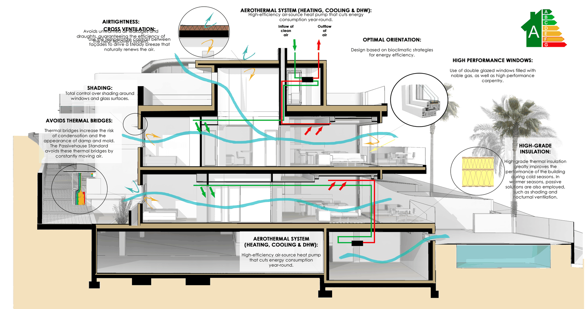 This development stands out for its elegant Mediterranean architecture with an avant-garde touch. Designed under the Passivhaus standard, it guarantees a sustainable construction that provides maximum thermal comfort and energy efficiency, reducing consumption and environmental impact.