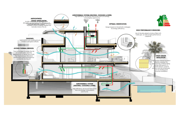 This development stands out for its elegant Mediterranean architecture with an avant-garde touch. Designed under the Passivhaus standard, it guarantees a sustainable construction that provides maximum thermal comfort and energy efficiency, reducing consumption and environmental impact.