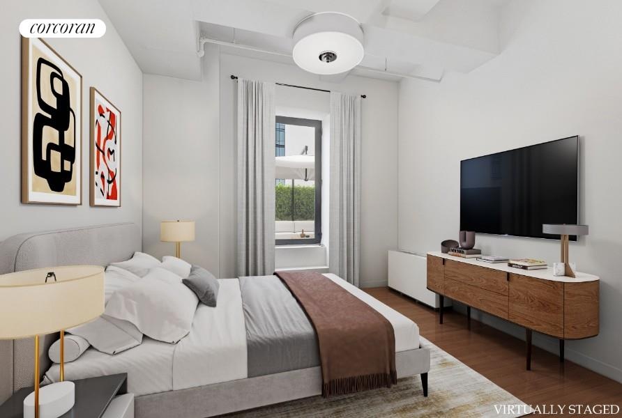 A dramatic entry gallery leads to this airy and bright residence. Eleven foot ceilings, three large windows, and a total of three glass terrace doors provide beautiful light and southwestern views of Brooklyn and the water. For those looking to entertain outdoors, this is a unique experience. Your guests will be stunned by the indoor/outdoor lifestyle this home provides. The private terrace is truly massive and allows for ample seating, dining, cocktail and gardening areas, and is equipped with electricity and drainage.