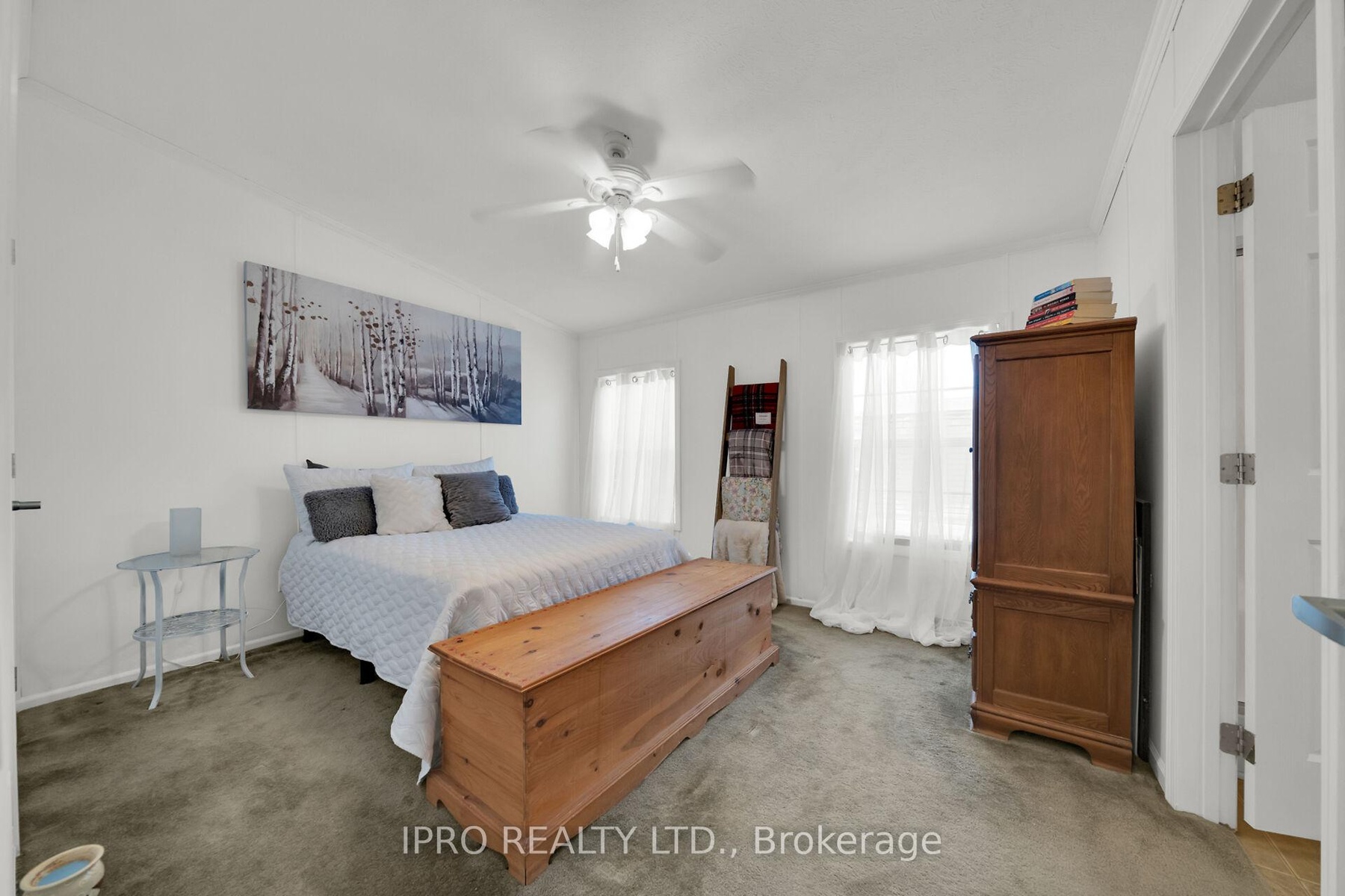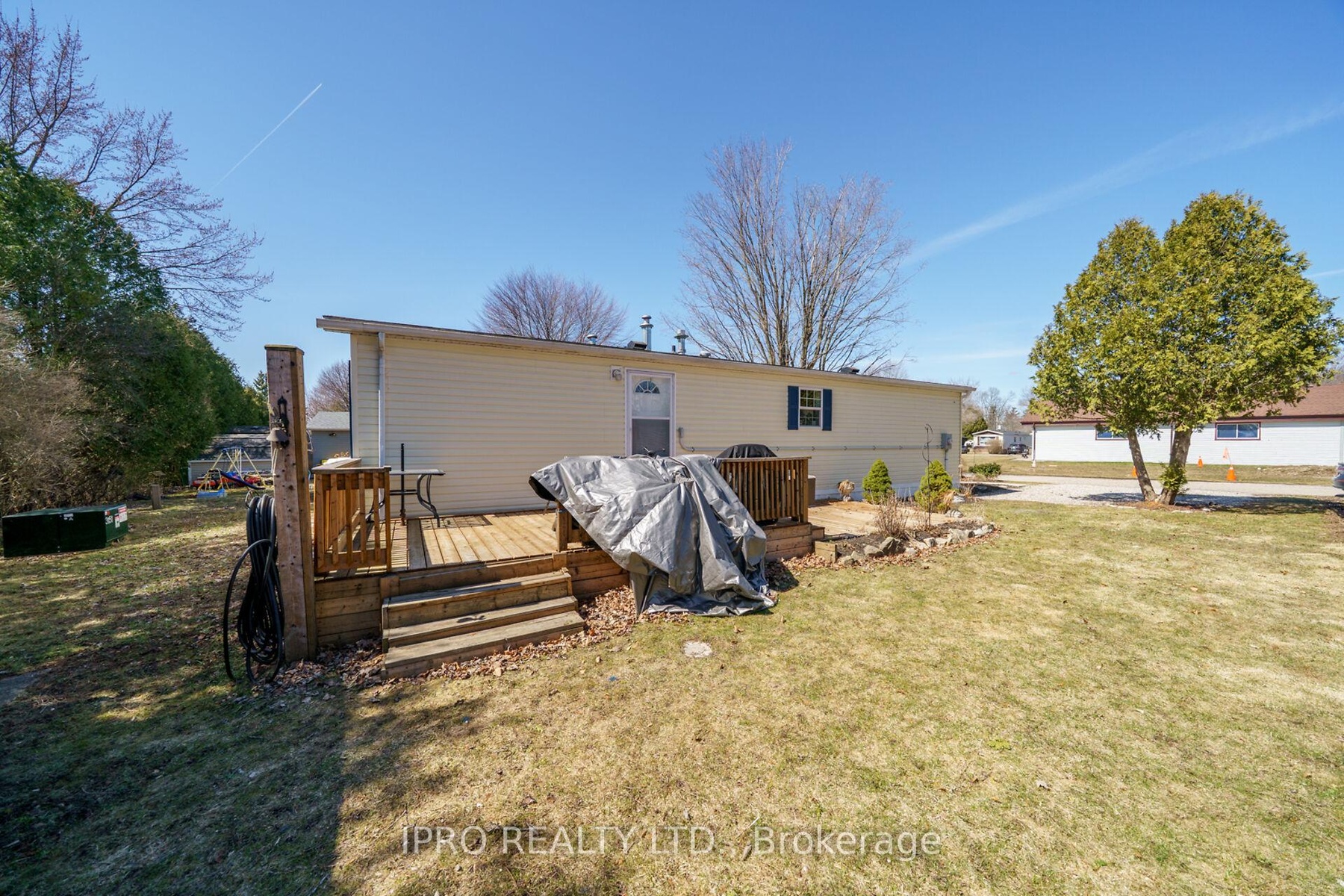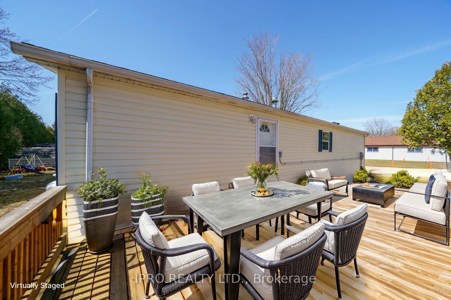 Welcome to the exquisite Beverly Hills Estates within the vibrant Parkbridge community! This charming 2-bedroom bungalow at 23 Macpherson is surrounded by beautifully landscaped perennial gardens and features a welcoming covered front porch. Step inside to discover a spacious open-concept layout highlighted by soaring cathedral ceilings, creating an inviting atmosphere. The kitchen is a chef's dream, complete with a cozy breakfast nook, ample cabinetry, and generous countertop space. For even more functionality, a central island provides additional workspace while overlooking the sunlit living room. The home boasts two well-proportioned bedrooms with ceiling fans, with the primary suite featuring a three-piece ensuite and double closets for your convenience. An additional versatile room at the back of the house can serve as a third bedroom, office, playroom, craft space, workout area, or cozy sitting/T.V. room the possibilities are limitless! A beautifully finished laundry room offers access to the side yard, complete with a deck and two handy sheds. The property also includes a double driveway for ample parking. As a resident of this fantastic community, you'll have access to the Recreation Center, where you can enjoy activities like pool, cards, bingo, and darts, or host events in the full kitchen with family and friends. Adults can unwind at the horseshoe pits, adding to the sense of community and enjoyment. Conveniently located on a paved circle in a serene rural setting just off Hwy 6, this home provides easy commuting to Burlington, Cambridge, Guelph, Hamilton, Milton, Oakville, and Waterdown. You're just 15 minutes from the 401 and 403 highways. The lease fee of $800.64 includes property taxes, snow removal for common areas, and grass cutting, making this an incredible opportunity to enjoy a vibrant lifestyle in the popular Parkbridge community. Don't miss out on calling this beautiful bungalow your new home!