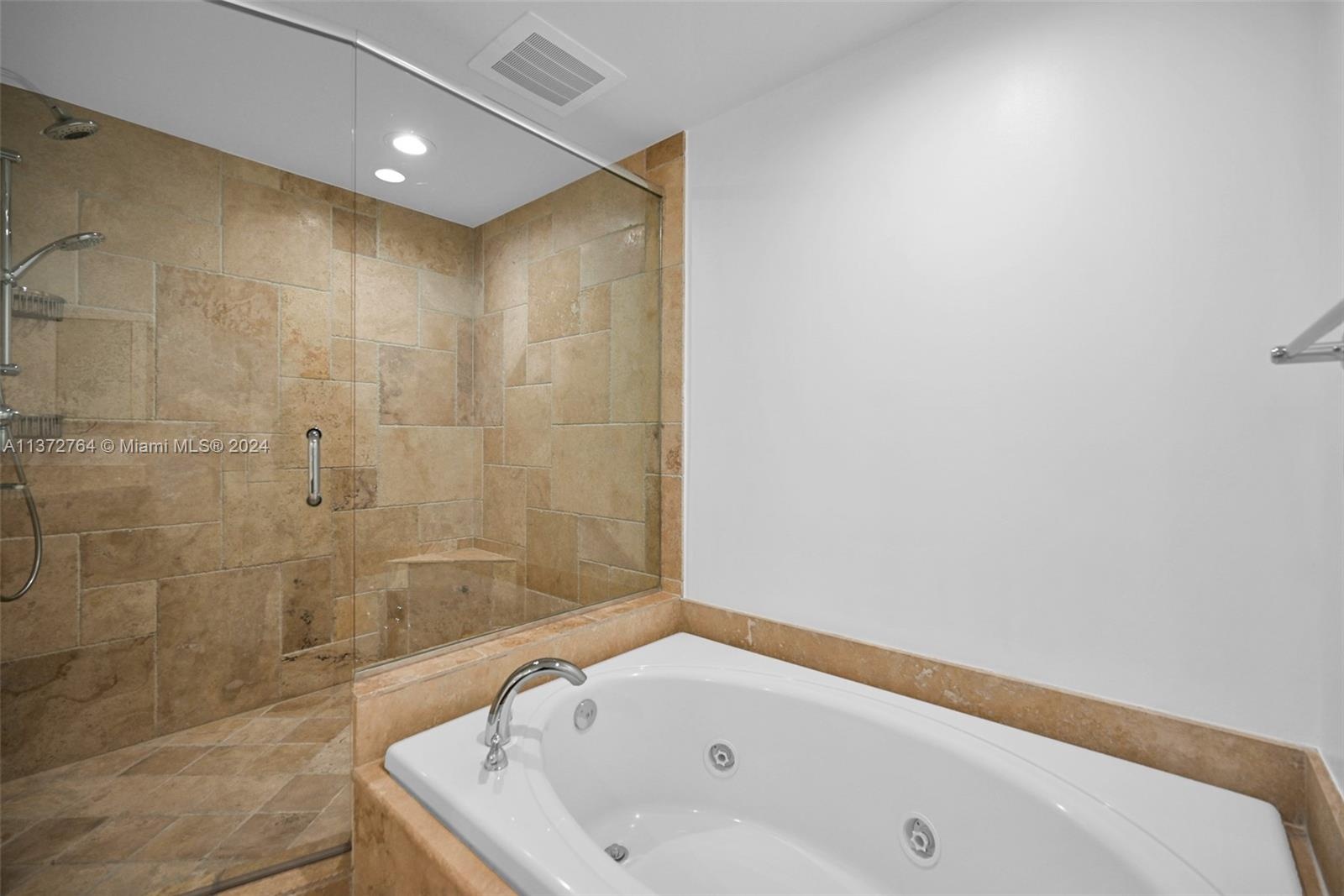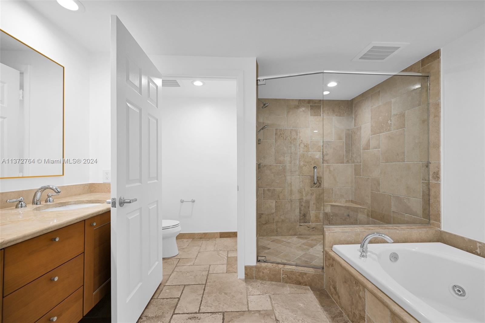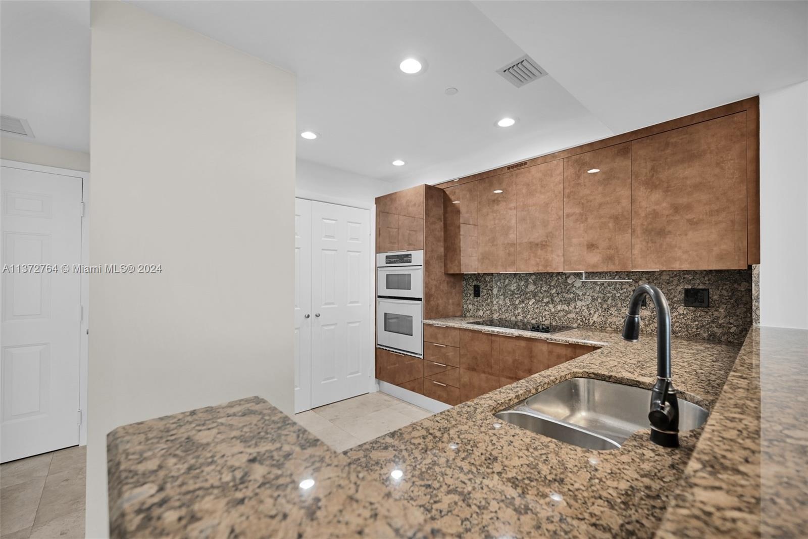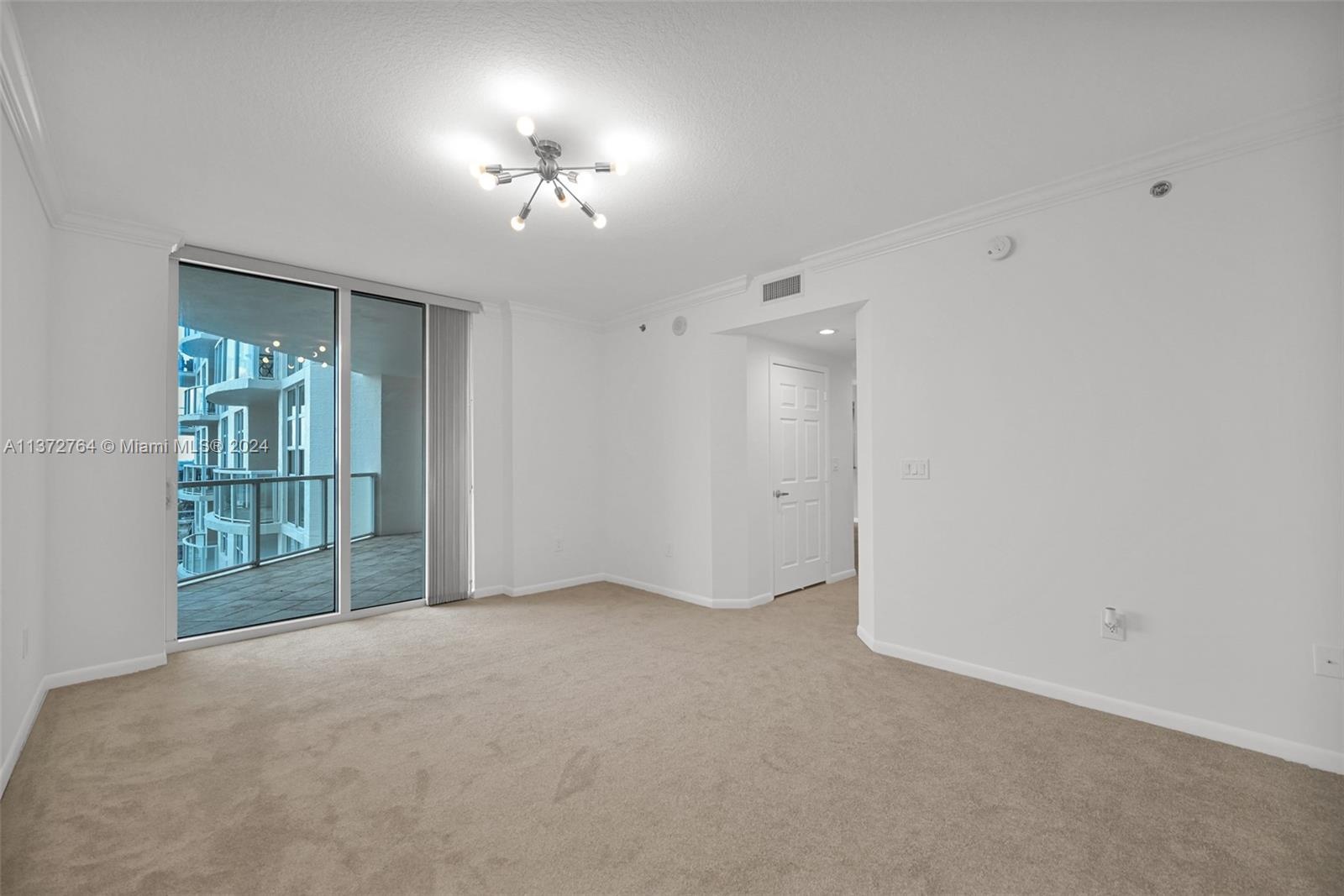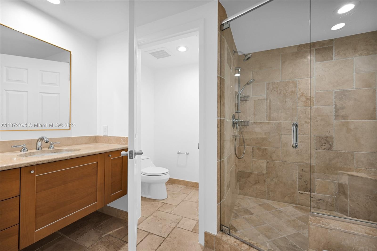 Luxury high rise w spacious rooms, high ceilings, natural stone flooring and floor to ceiling windows.