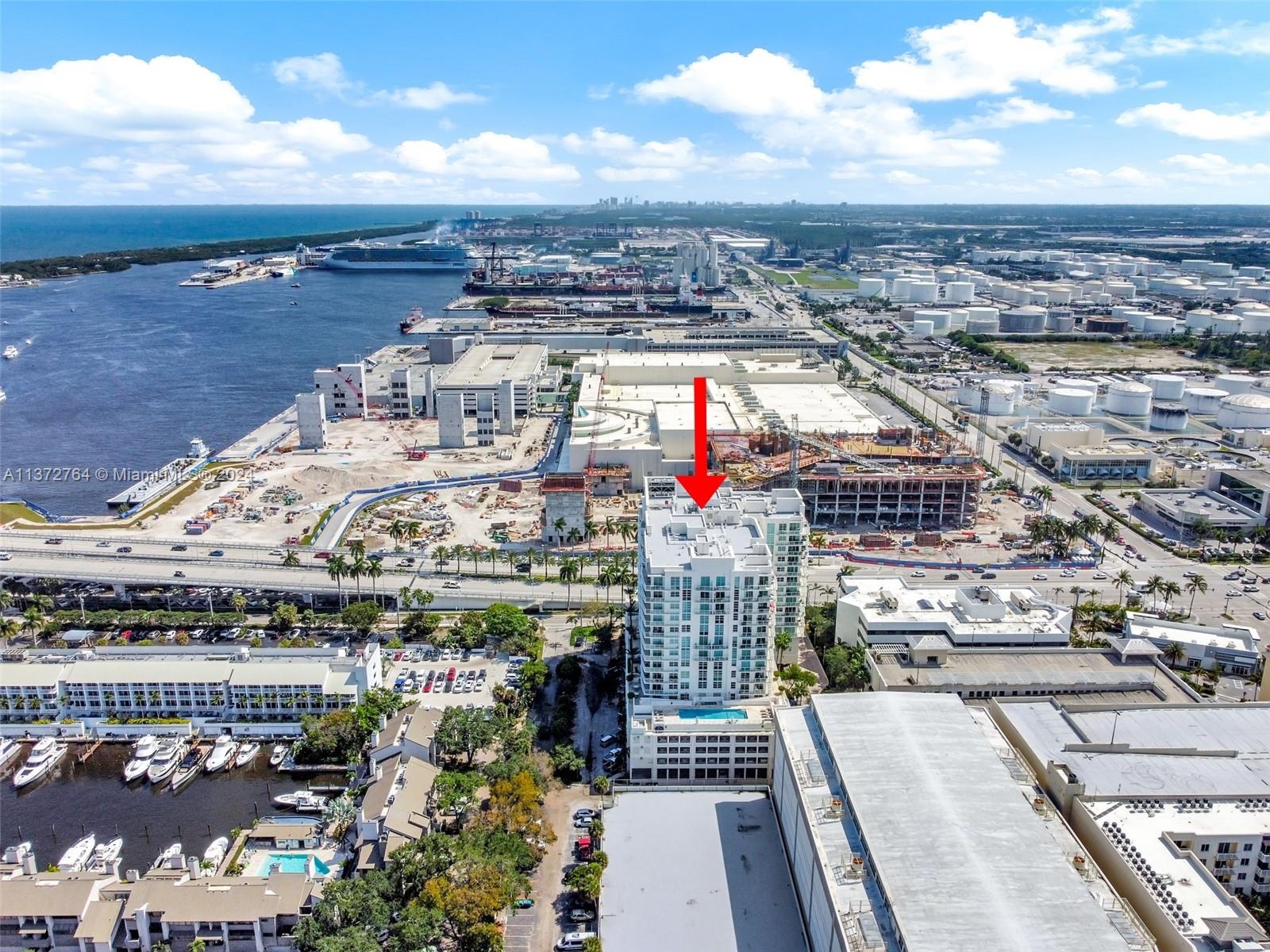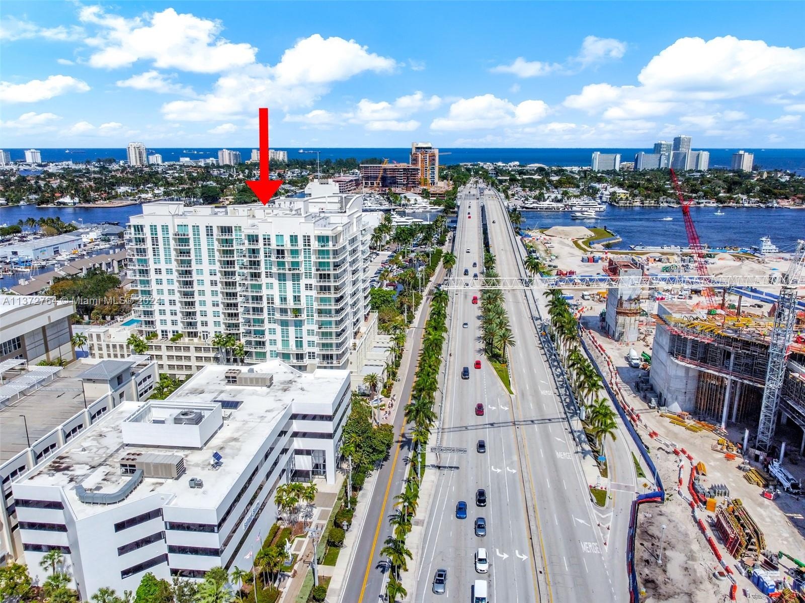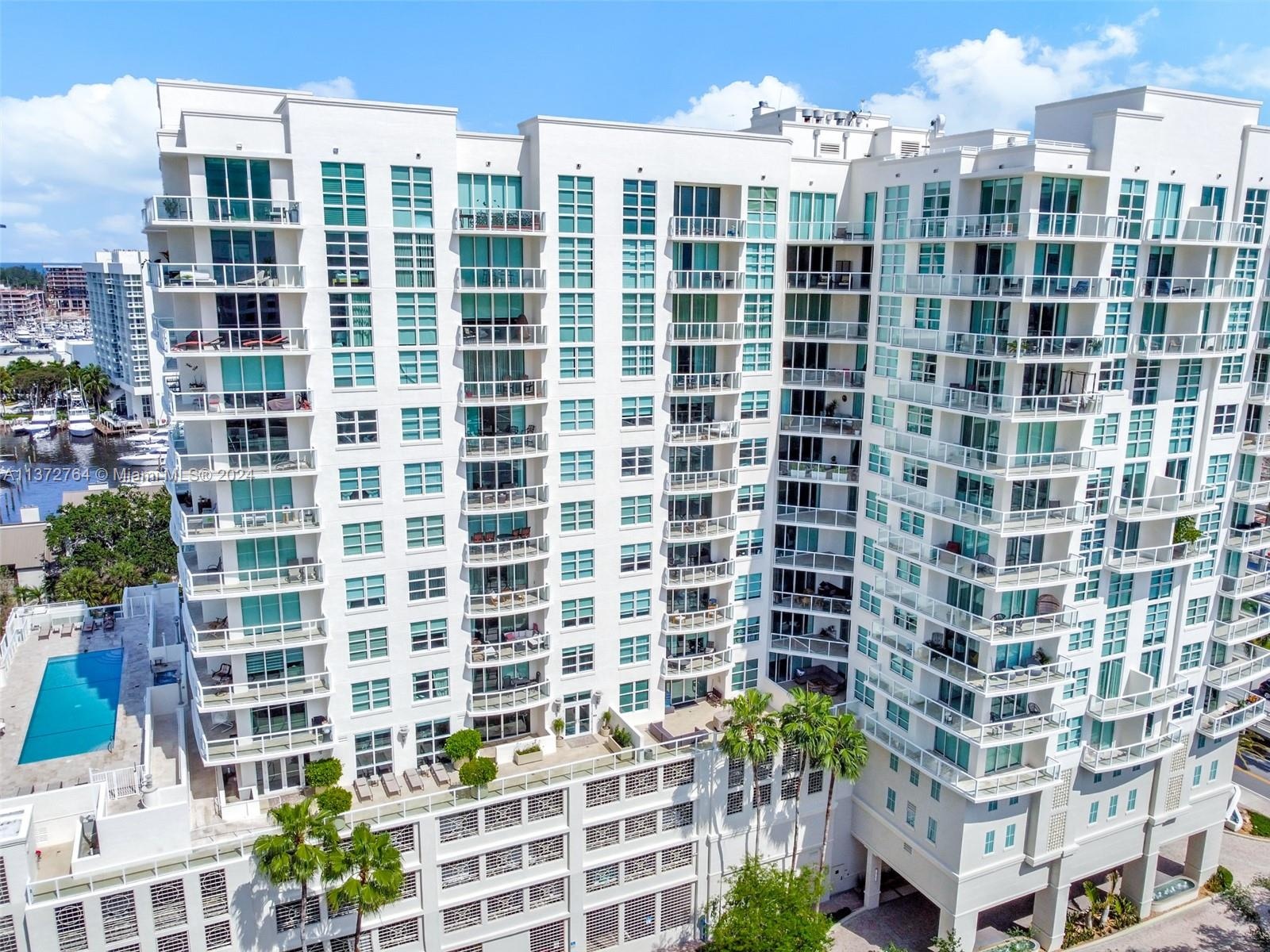 Luxury high-rise w/spacious rooms, high ceilings, natural stone flooring and floor to ceiling windows. Larger than many 2 bedrooms + a 13' deep glass balcony. Bonus flex space ideal for office/media/guests. The generous bedroom suite opens to the balcony and features 2 walk-in closets. Bath features, Hansgrohe fixtures, double vanity, Jacuzzi spa, separate shower & water closet. Yacht inspired kitchen with built-in refrigerator & ovens, Della Casa cabinetry & full-size laundry with storage. 2 garage spaces + separate storage. Fee includes water/sewer/trash/wi-fi/Direct TV/hot water/parking/storage/amenities/reserves/full-service staff. Attended lobby, pool/spa, club room, well equipped fitness center, saunas & business center. Dockage available for lease/purchase at adjacent Port Marina.