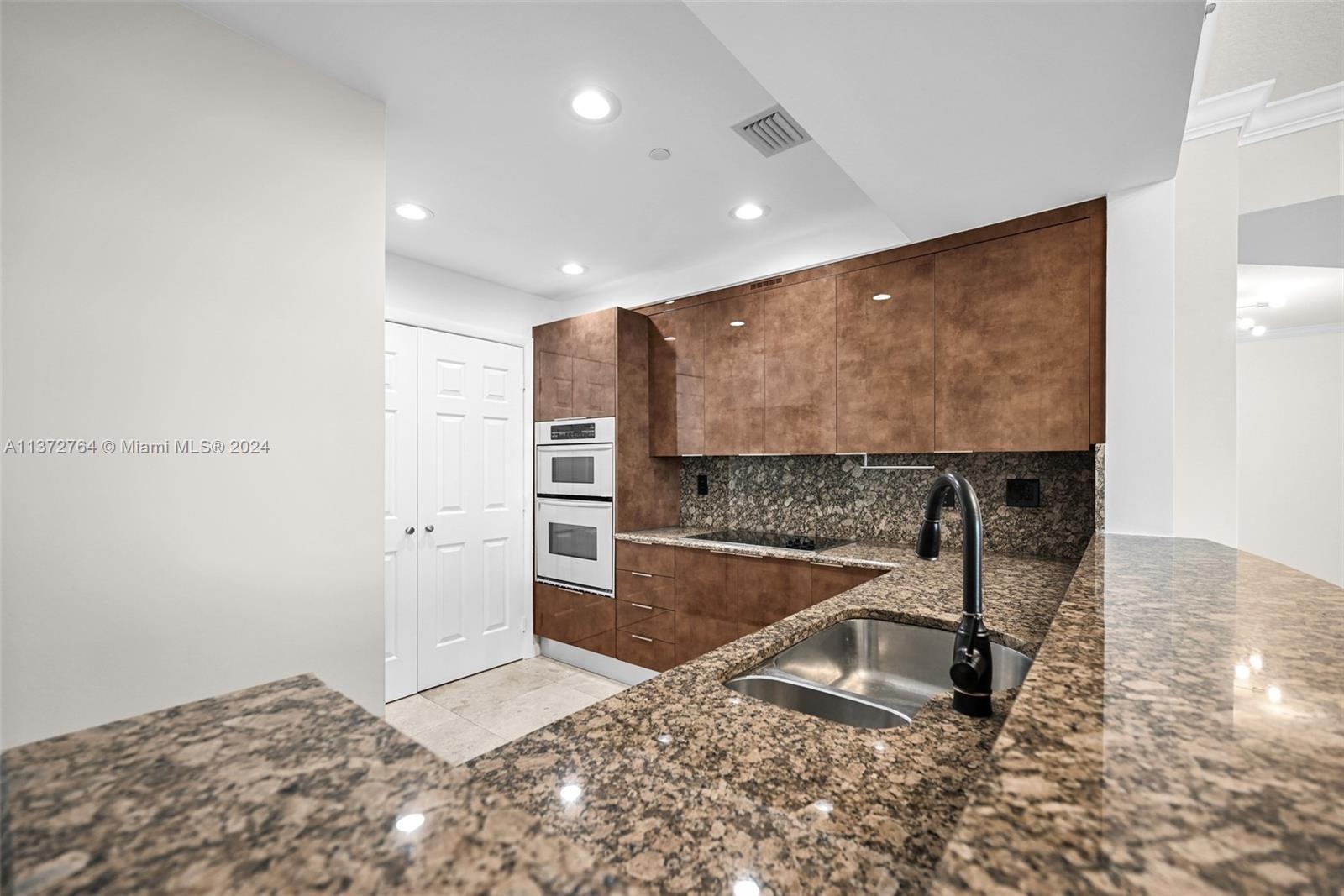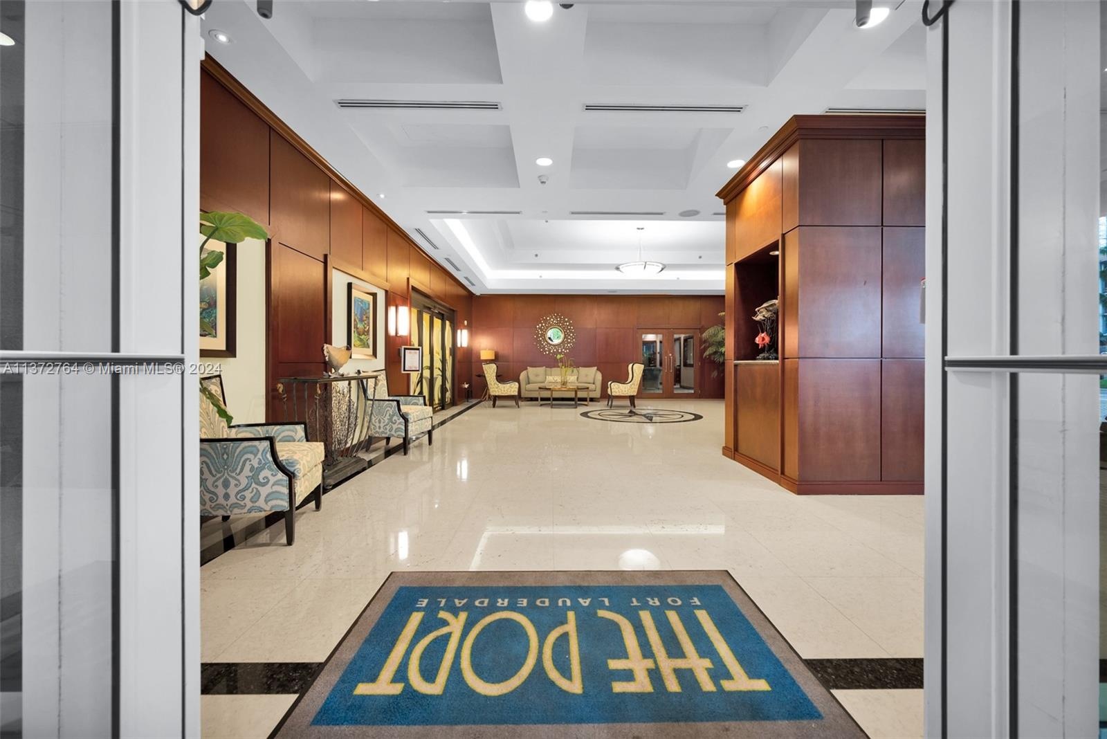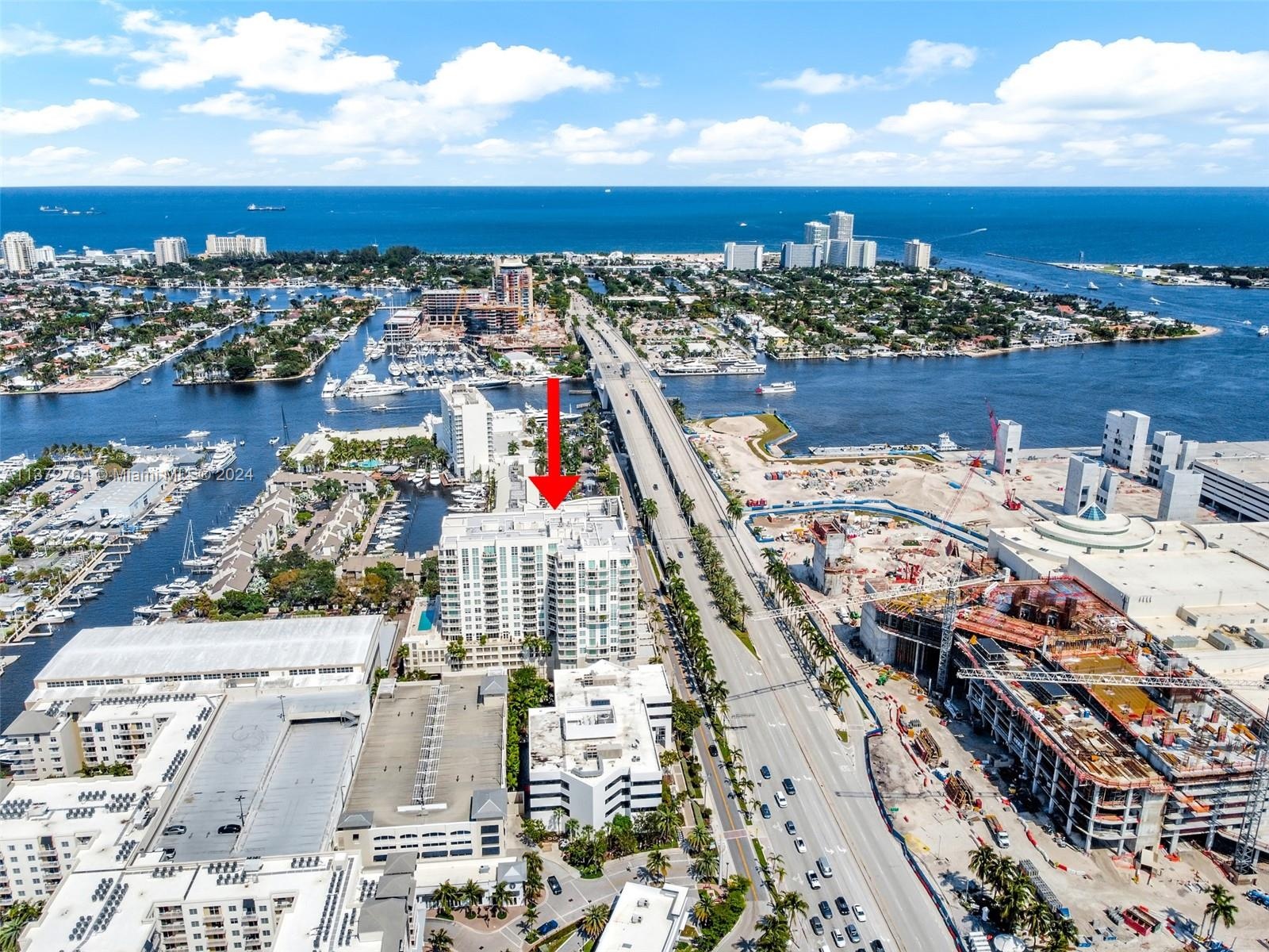 Luxury high-rise w/spacious rooms, high ceilings, natural stone flooring and floor to ceiling windows. Larger than many 2 bedrooms + a 13' deep glass balcony. Bonus flex space ideal for office/media/guests. The generous bedroom suite opens to the balcony and features 2 walk-in closets. Bath features, Hansgrohe fixtures, double vanity, Jacuzzi spa, separate shower & water closet. Yacht inspired kitchen with built-in refrigerator & ovens, Della Casa cabinetry & full-size laundry with storage. 2 garage spaces + separate storage. Fee includes water/sewer/trash/wi-fi/Direct TV/hot water/parking/storage/amenities/reserves/full-service staff. Attended lobby, pool/spa, club room, well equipped fitness center, saunas & business center. Dockage available for lease/purchase at adjacent Port Marina.