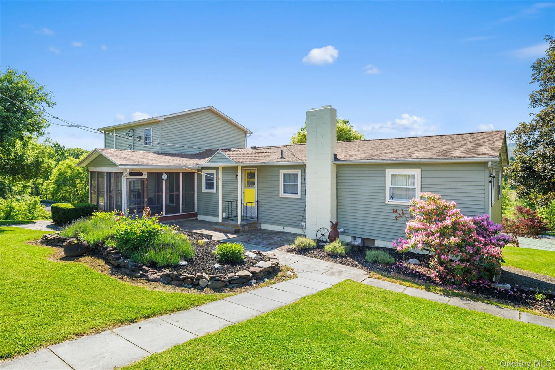 Two for one! 19 Pompeys Cave boasts opportunity with two, fully permitted, living spaces attached as one. This makes for a fantastic investment opportunity where you can live in one, and rent the other or use both as full time rentals. In the original portion of the house, enjoy simple one level ranch style-living. Open space between the kitchen, living and dining room makes for an easy and maintainable space. In this portion of the home you will find 3 nicely sized bedrooms and 2 full bathrooms. Pass through the shared door the other side of the home and take advantage of the private split level concept. The main living area on the bottom floor features a full kitchen, bath, dining and living room. The middle floor hosts a foyer and one generously sized bedroom. Escape to the third level that is the primary suite with a private balcony, jacuzzi soaking tub and walk in shower. Sweeping views of the Mohonk Mountain House and Shawangunk Ridge flood through all floors of this meticulously maintained home. Outside enjoy the spacious yard with beautiful gardens, patio and pool. This special house holds great opportunity for multi-family income, short term rental income depending on permitting or a mini-compound for your full-time or weekend residence. 19 Pompeys Cave is centrally located, offering a 20 minute ride to Kingston, New Paltz and Ellenville. Easy access to hiking at Minnewaska Preserve, Arrowwood Brewery, Inness and the center of High Falls.