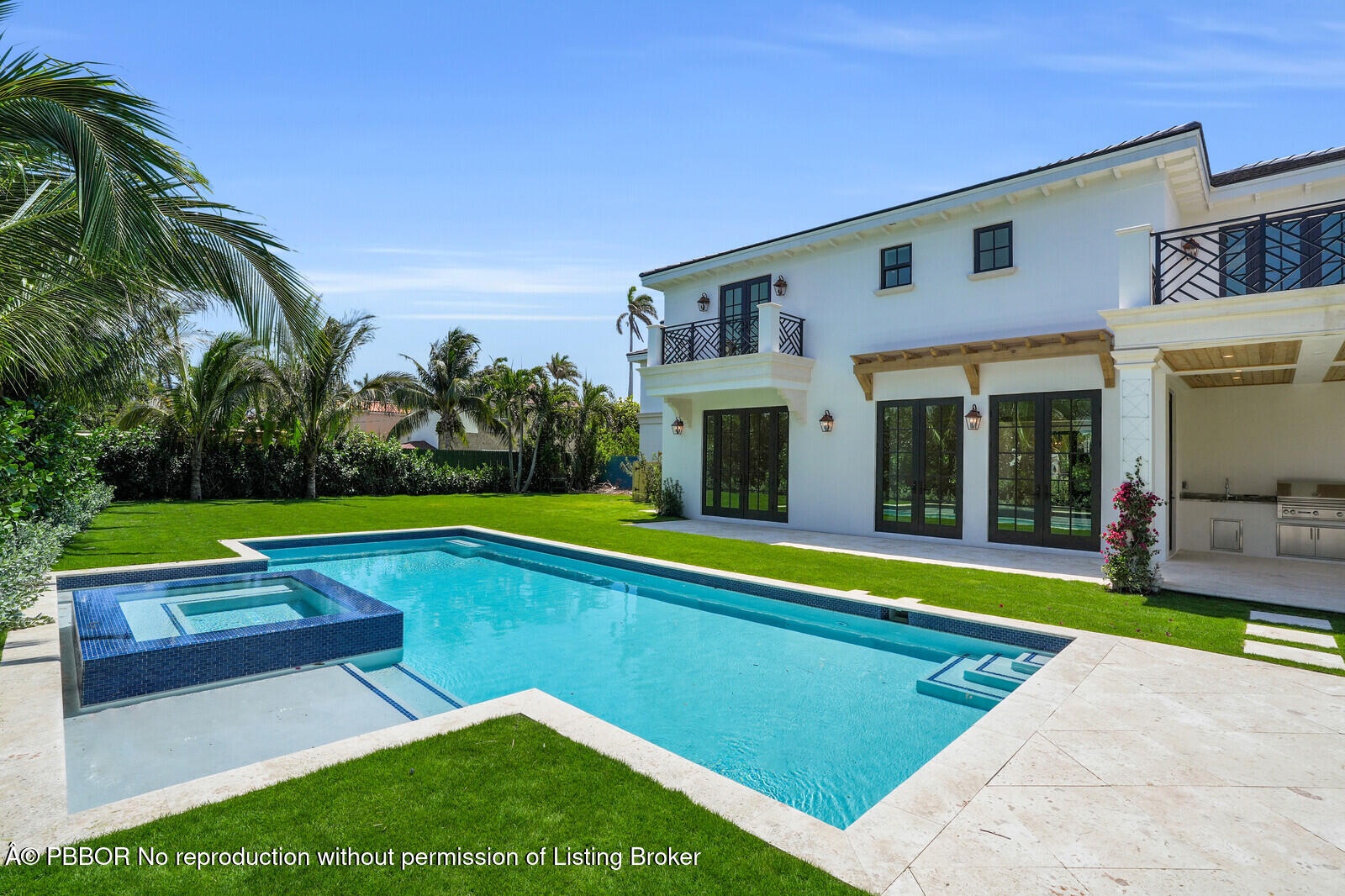 This newly completed five bedroom main house with a separate guest house located above the two car garage. Stunning family home with tasteful appointments and spacious backyard with private pool area.