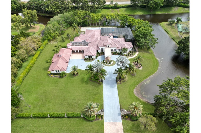 Nestled within an ultra-exclusive gated enclave of just 52 homes in Tierra Del Rey Estates South, this extraordinary estate offers a rare blend of elegance, privacy, and resort-style living. Spanning 3.4 ACRES and surrounded by a tranquil LAKE on three sides, this breathtaking property is truly unique. Step inside to discover FIVE spacious bedrooms, complemented by a dedicated GYM, private OFFICE, children's playroom, and a state-of-the-art MOVIE THEATER--all designed to enhance both comfort and entertainment. The open-concept living spaces are bathed in natural light, offering seamless indoor-outdoor integration.The outdoor experience is nothing short of spectacular. A soaring 21-foot enclosed pool lanai features a summer kitchen, creating the ultimate space for