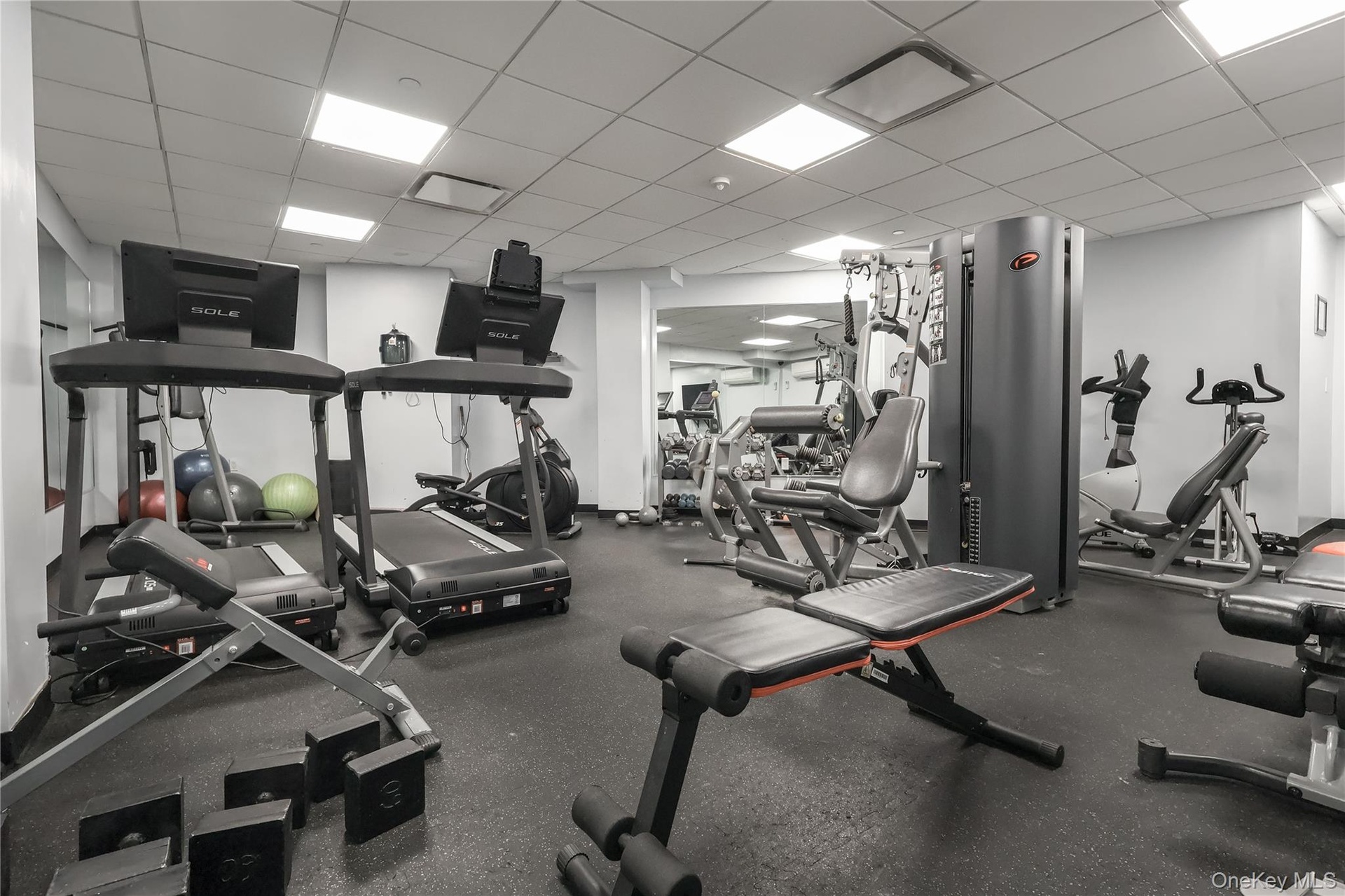 - Workout area featuring a drop ceiling