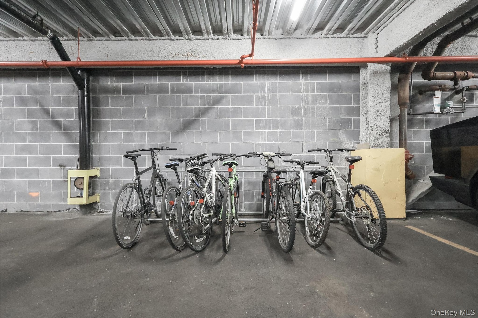 - Garage with concrete block wall and bike storage