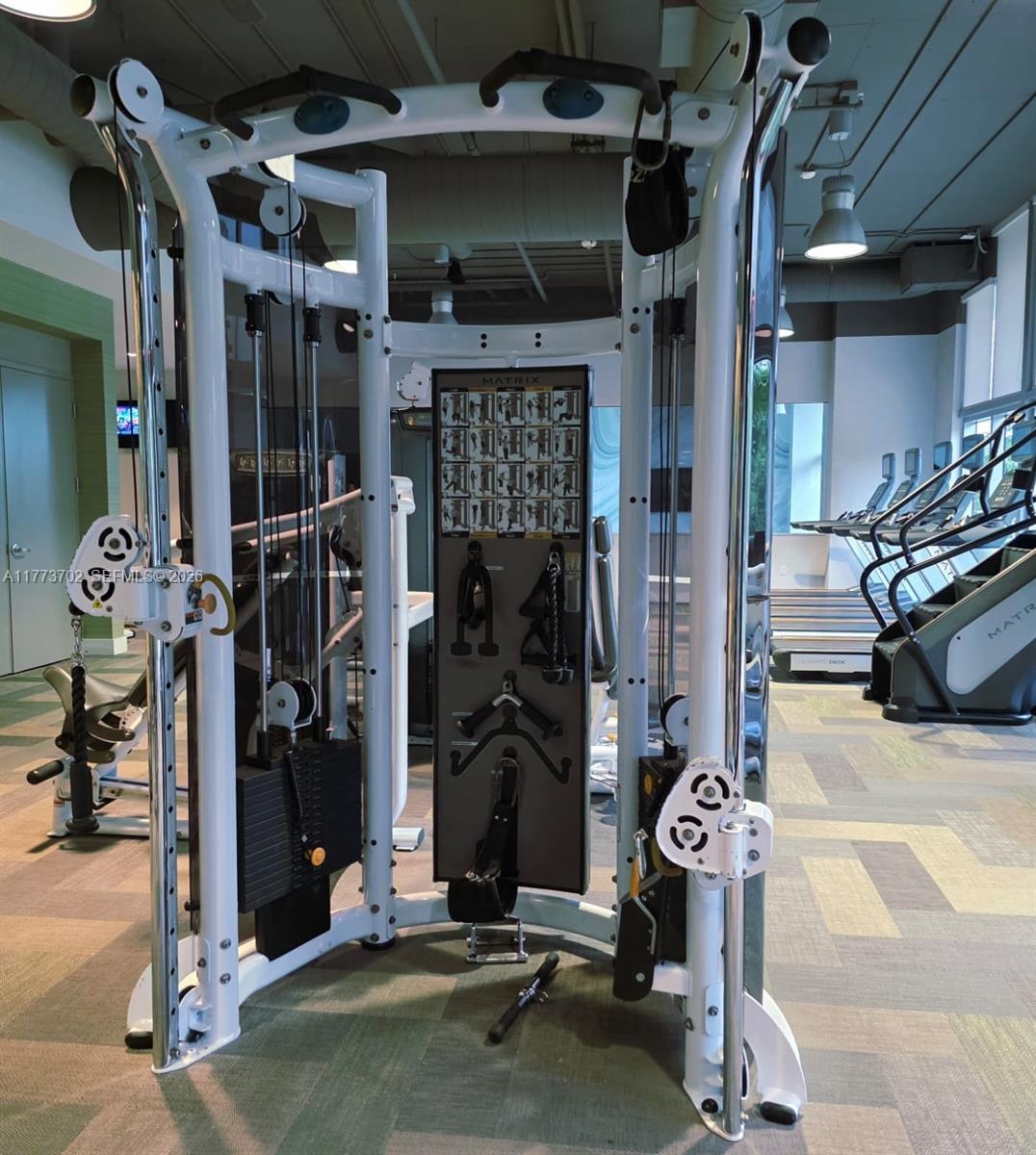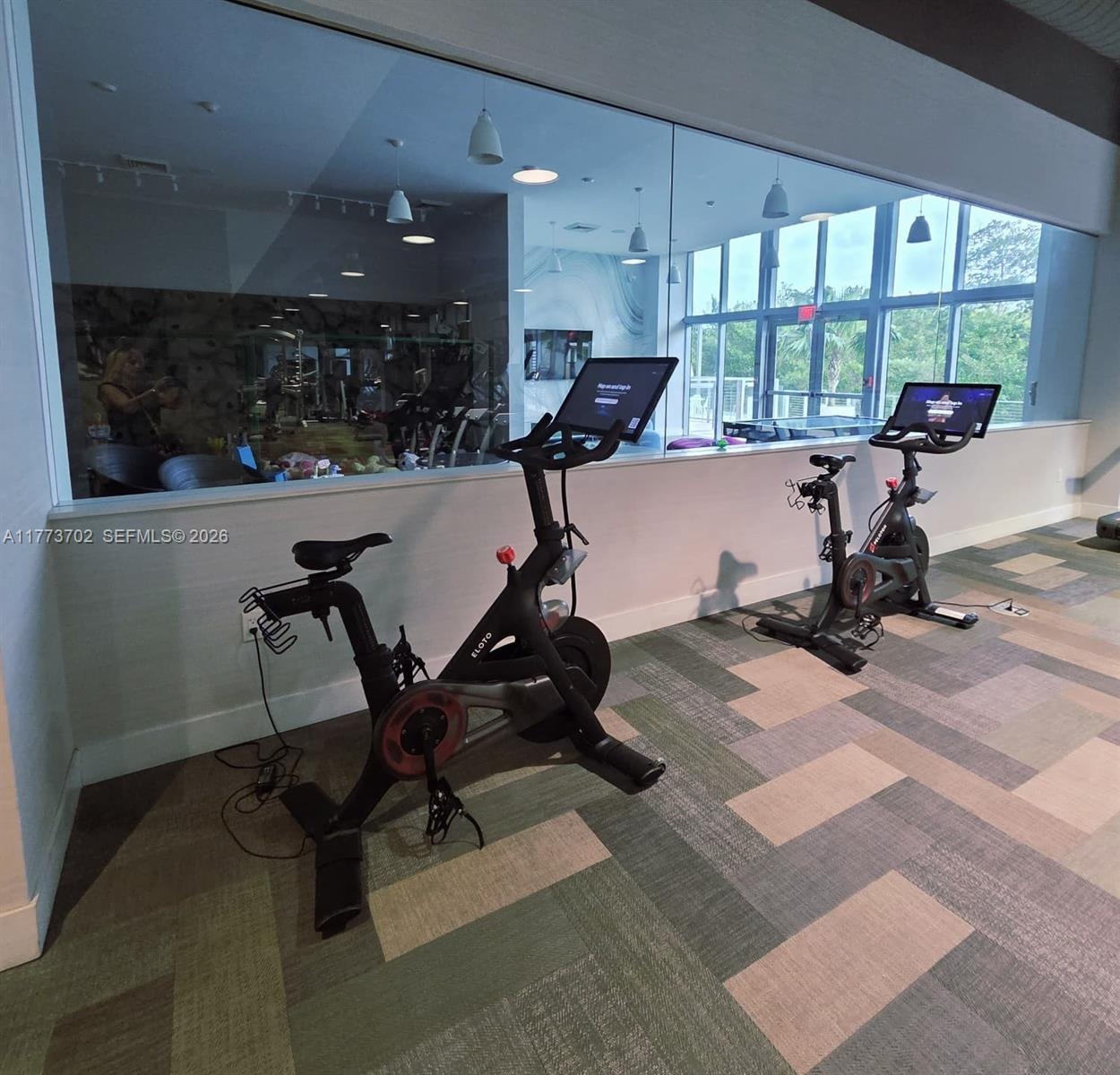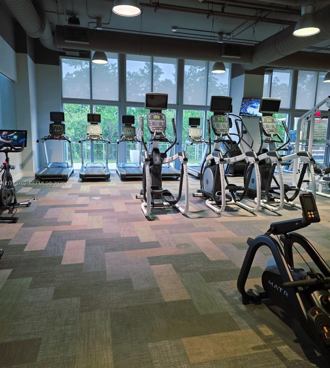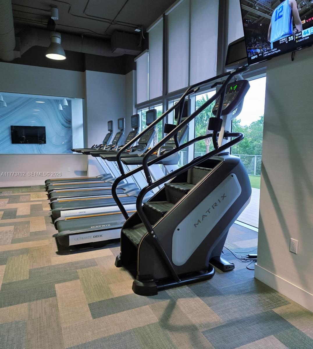- Fully equipped gym with modern cardio machines and strength-training equipment, complemented by floor-to-ceiling windows for natural light.