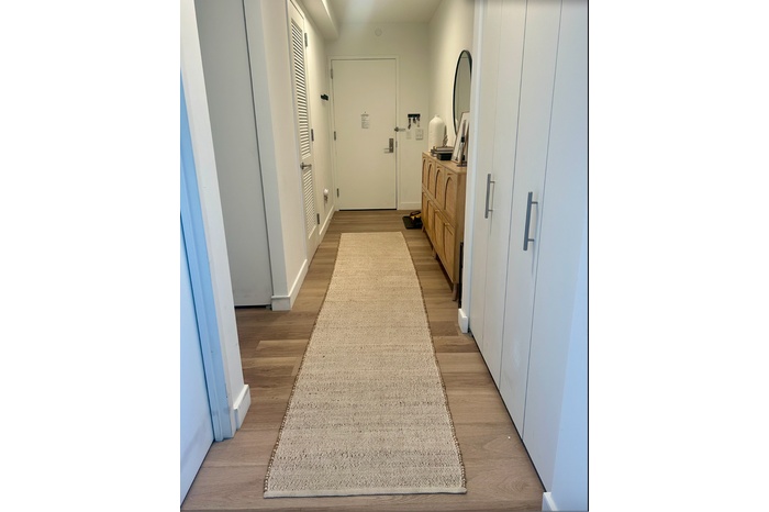 Entering the unit, you will find a thoughtfully designed layout that maximizes space and natural light. With four spacious rooms, this residence is perfect for both comfortable living and entertaining guests. The apartment is in excellent condition, offering high-quality finishes throughout, along with modern in-unit laundry facilities for your convenience.