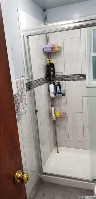 - Full bathroom featuring a shower stall