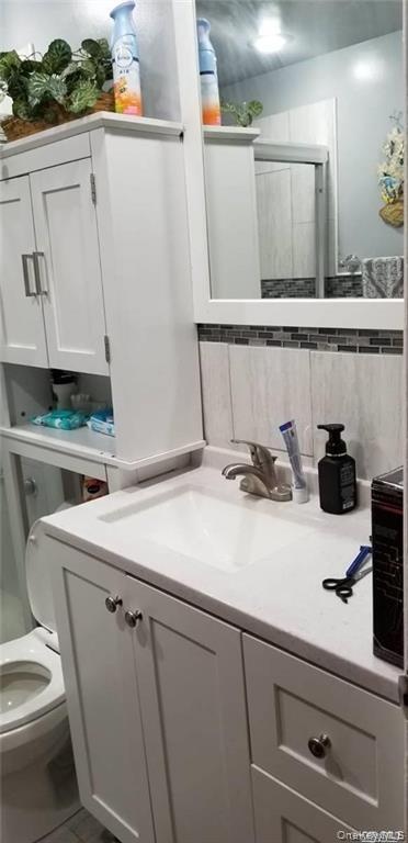 - Full bath featuring vanity and toilet