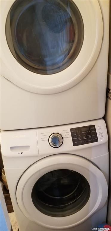 - Washroom with stacked washing machine and dryer