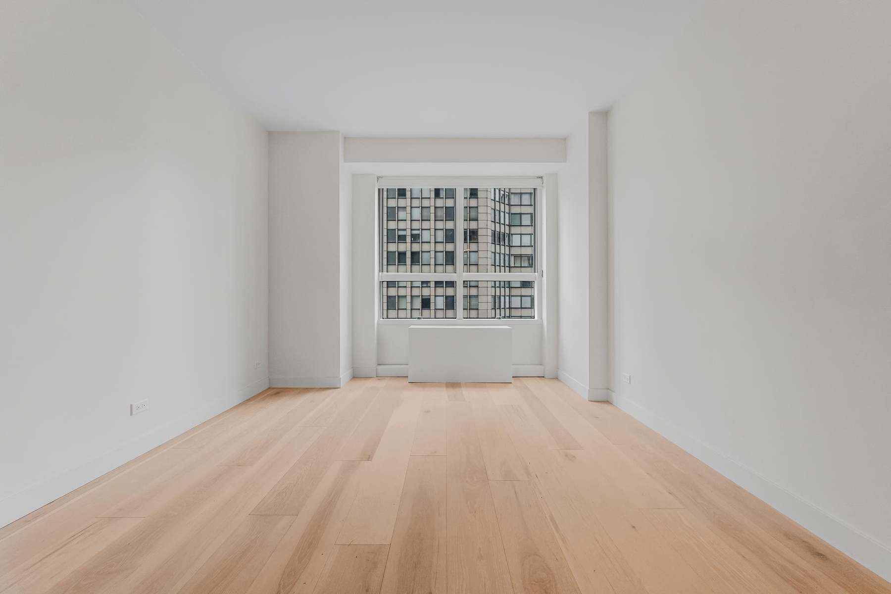 This elegant apartment features oversized windows that flood the space with natural light throughout the day, offering the NYC skyline.