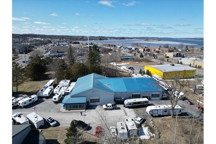 Great for any industrial use, RV, truck, auto sales and service, or retail. Situated next to Home Hardware on the main retail street in Rockland. Currently operating as an RV repair shop and sales centre. Vacant possession available, or can be purchased with a quality tenant in place for an investor. The building features 3 large bays each with drive-in and drive-out 14 feet high roll-up doors. A total of 10,791 square feet inclusive of the ground floor area (10,196 sf) and mezzanine (595 sf). Ground floor has a reception office with air conditioning, three bays, and interior offices. Plenty of power with 400 amp 600 volt service distributed to sub-panels in each bay. Two suspended forced-are gas heaters in each bay. Access to highway 174. Proximity to other major retail and automotive dealers. Rare opportunity to acquire a facility designed for large vehicles. Ceiling height is 15 "6" clear. Sizeable lot with ample parking. A phase 2 environmental report concludes the site is within the ministry of environment's acceptable standards. Lovely view of the Ottawa river as the property sits above highway 174. Building was constructed in 1998 and expanded in 2000 and 2007. Very clean and well-kept.