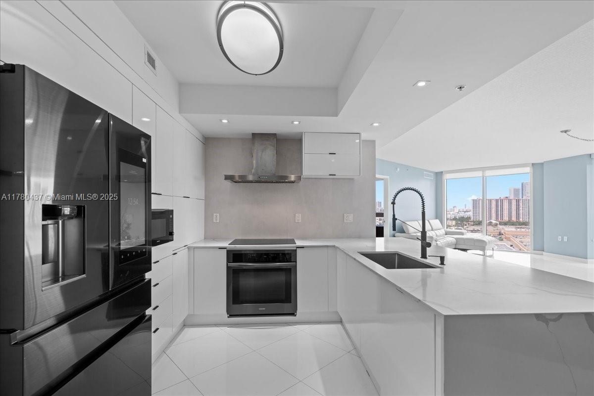 BEST DEAL AT ST TROPEZ 2. Beautiful Ocean views from this large 3 full bedroom condominium in Sunny Isles Beach with new kitchen and new appliances. Prime location right across from the ocean in a full service building. Swimming pool, gym, security, coffee shops and many retail shops for your convenience. City park being built across the boulevard, pier with restaurant steps away on one of the most prestigious beaches in South Florida. Beautiful Terrace with amazing views.