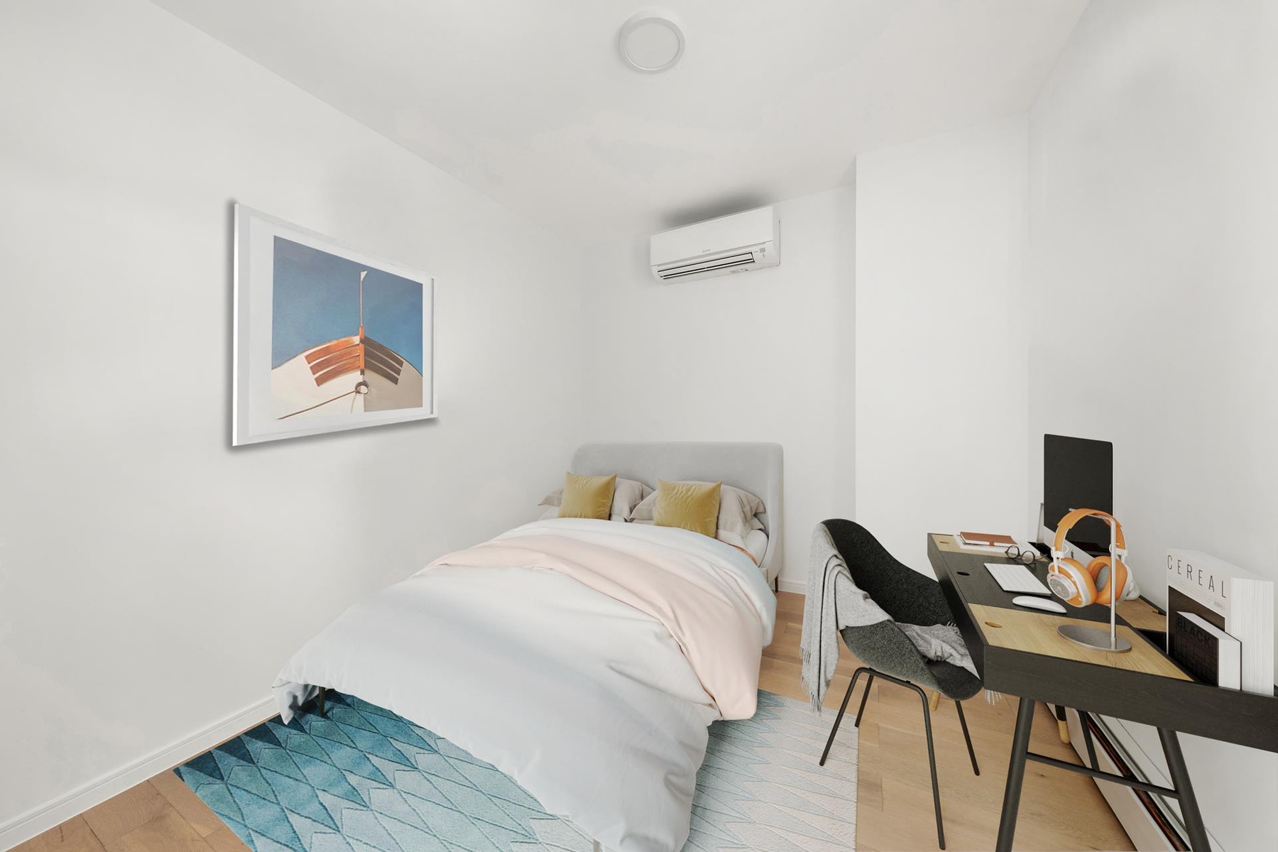 Building amenities include an elevator, phone-enabled intercom, package room, fitness center, Zen garden, free bike storage, and a spectacular roof deck with panoramic views of the Hudson River, George Washington Bridge, and Manhattan skyline.