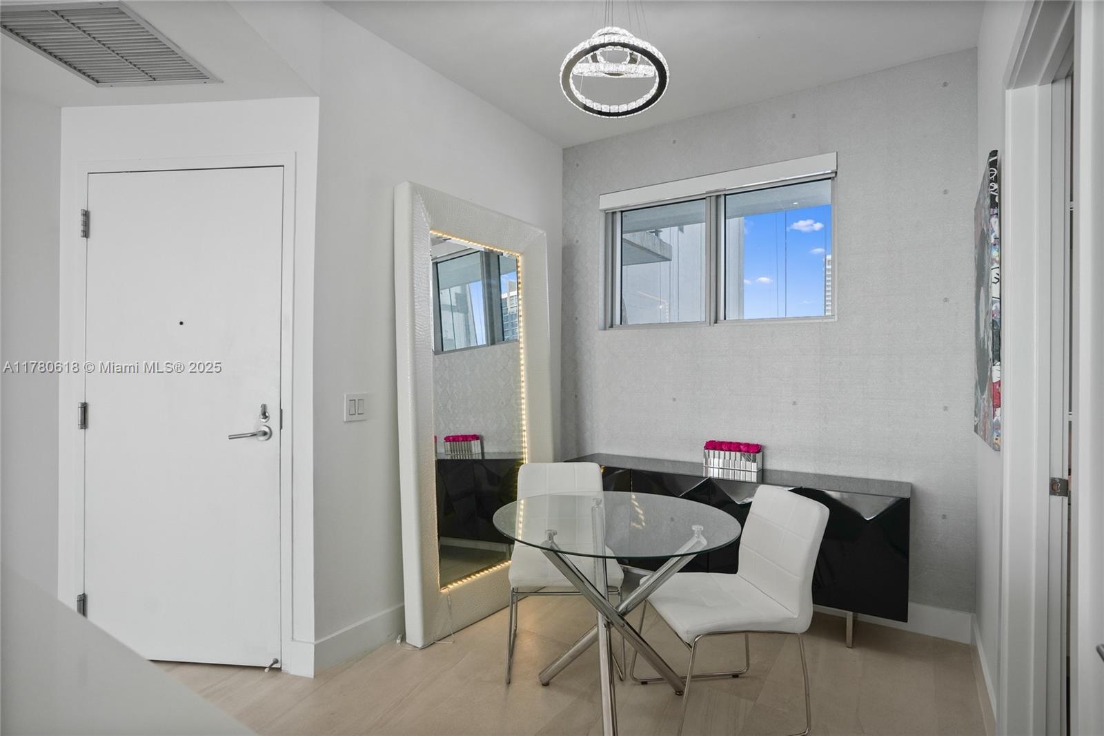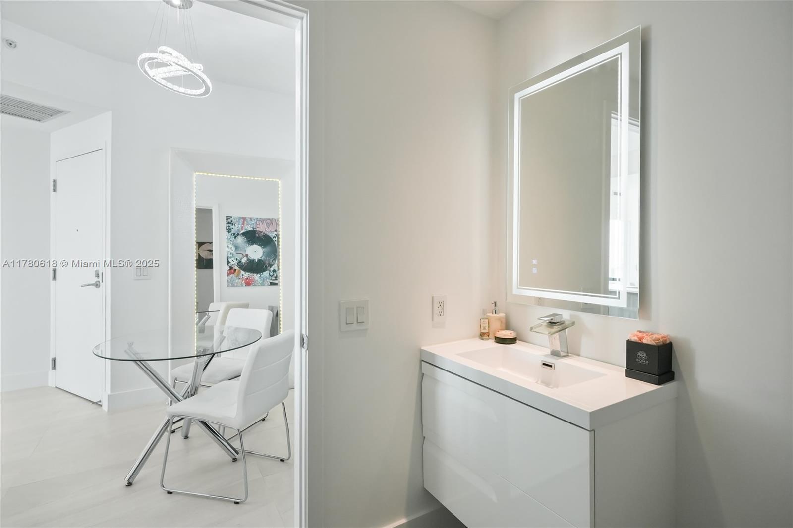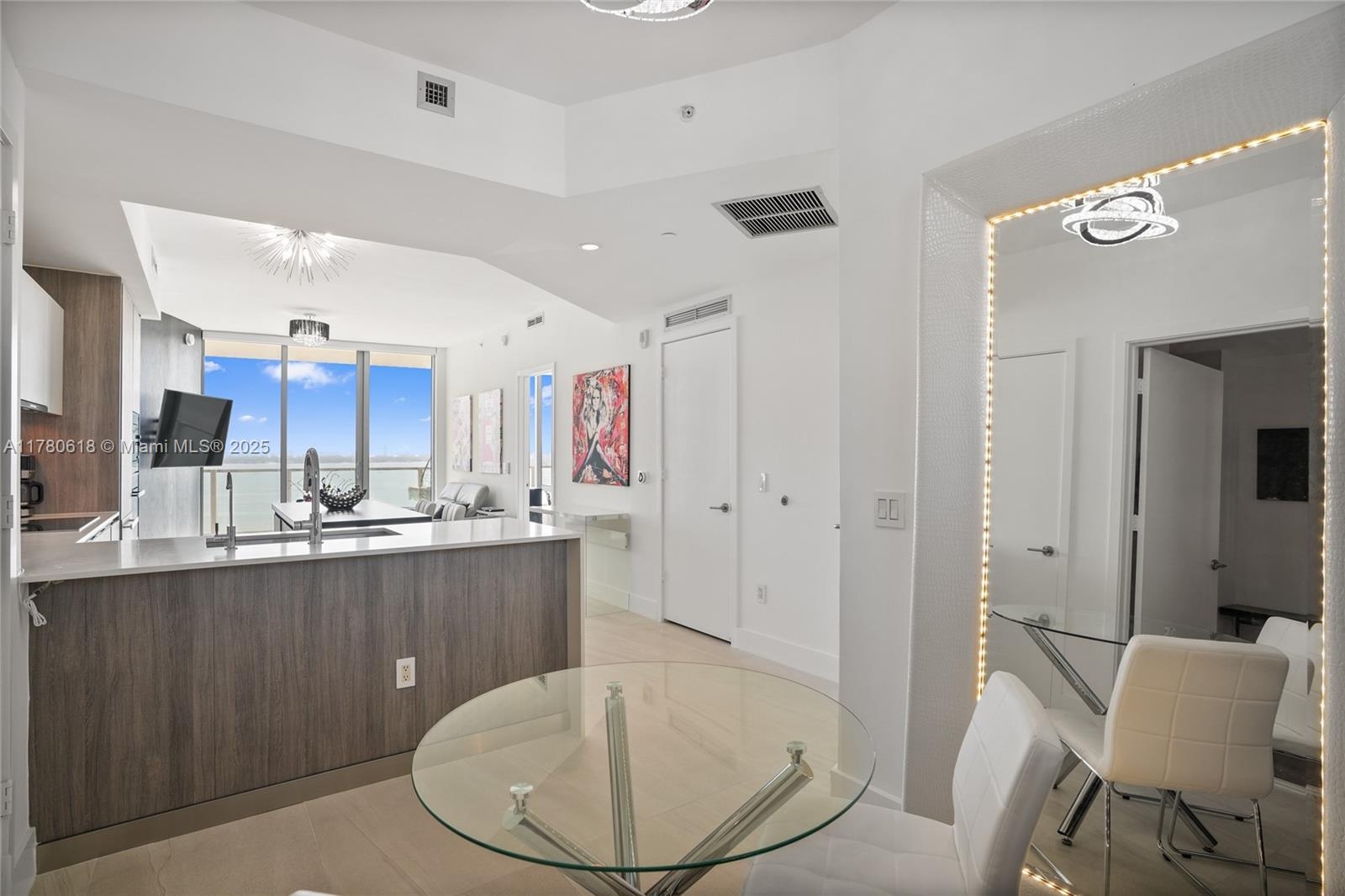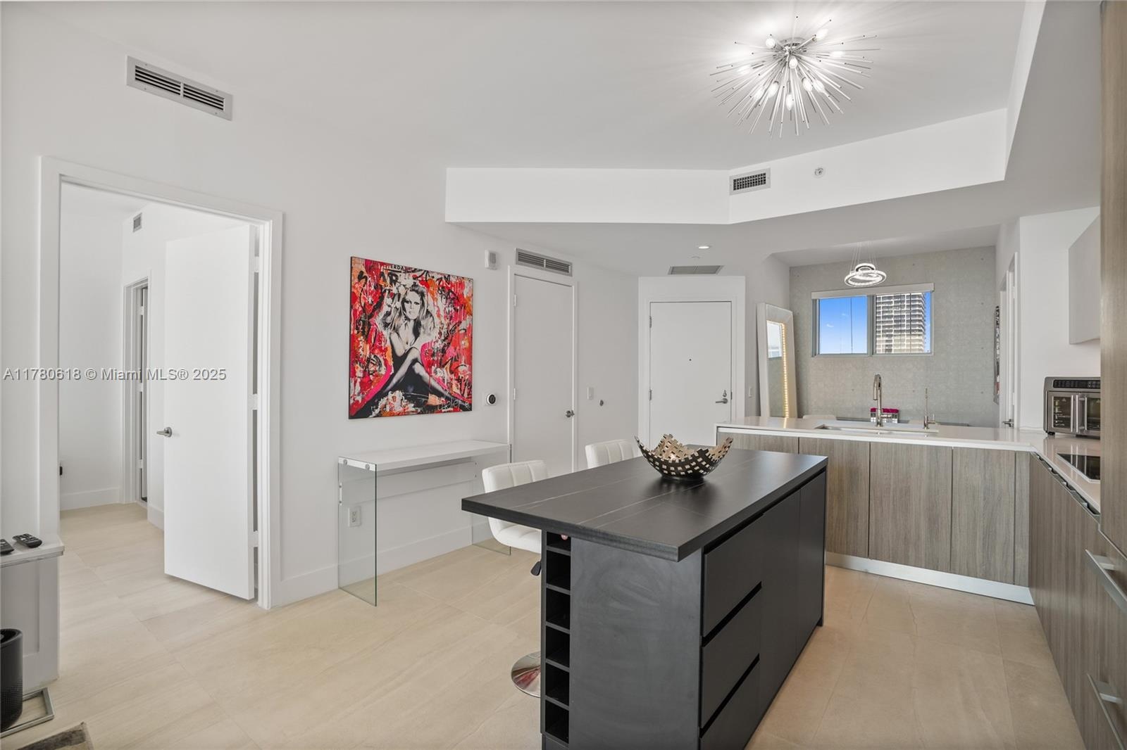 This stunning 2-bedroom, 3-bathroom condo with a den features luxury upgrades like a UV light system, 3M water filter, and Roberto Cavalli wallpaper. The master suite offers a custom closet, full-wall mirror, updated shower with new handles, and sleek floating vanities. Italian porcelain floors, a black kitchen island, and electric blackout shades add to the elegance.