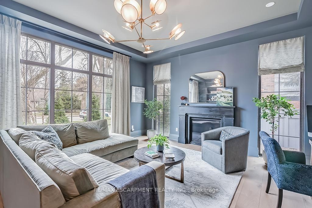 Introducing "Roseland Manor" Awarded "Luxury Residence Canada" in the prestigious 2024 International Design & Architecture Awards! Located in the heart of "Olde" Roseland on a 100' x 150' lot backing onto Roseland Park and Tennis Club. 9747 sqft. of luxury living space that showcases impeccable craftsmanship and harmoniously combines elegance and functionality. At the core of the home, the chefs kitchen boasts top-tier appliances, a full butlers pantry and a walk-out to a covered terrace with outdoor kitchen that overlooks the private and tranquil yard designed and completed by Cedar Springs. The great room helps to fill the home with loads of natural light thanks to its stunning display of floor to ceiling windows. The gas fireplace and a 20' coffered oak ceiling help to complete this unique and special setting. The main level also features a spacious bedroom with 3-pc ensuite and a library/office with gas fp and custom soapstone mantle. The luxurious upper level is highlighted by the primary bedroom, which incorporates a charming sitting area separated by a stone fireplace wall and features a 5-piece ensuite with access to a private dressing room. Two additional bedrooms on the upper level both have their own ensuites and the office can be used as an additional bedroom if desired. The extensive list of luxury features includes engineered white oak floors with herringbone hallway floors, oak ceilings, a residential elevator servicing all three levels, Control4 home automation, 400 amp service with 400 amp Generac generator, two laundry rooms, garage parking for three cars including a car lift to the lower level garage/workshop, an exterior snowmelt system for the driveway and front walkway/courtyard and a fully finished lower level with hydronic under floor heating, wine cellar, home theatre, exercise room and wet bar. This truly one of a kind residence is a unique opportunity and must be seen to be fully appreciated! 5 bedrooms and 4+2 bathrooms. Luxury Certified