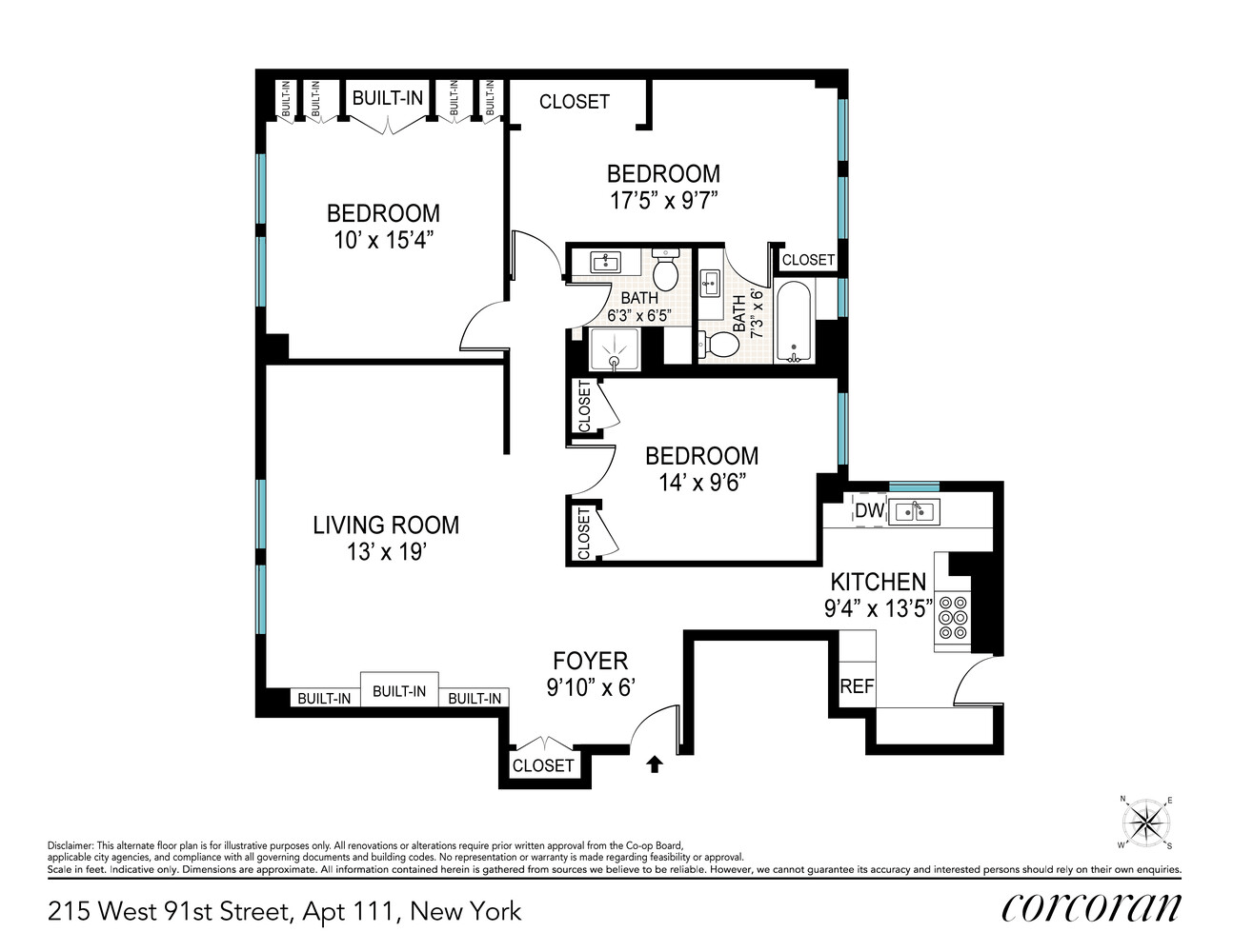 Disclaimer: The alternate floor plan is a conceptual illustration only. It has not been reviewed or approved by the cooperative board. All proposed alterations are subject to the board's formal application and approval process prior to implementation.