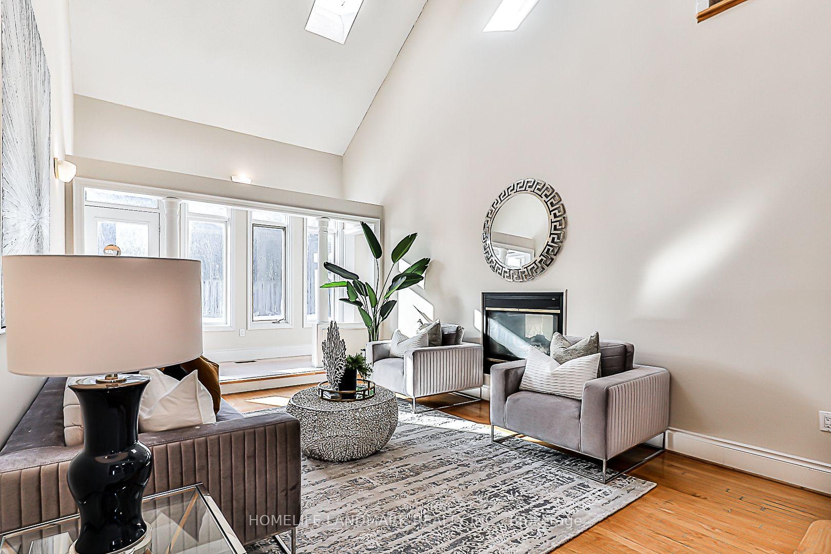 Welcome to this beautifully designed residence featuring a bright and airy family room with a soaring ceiling and skylight.
