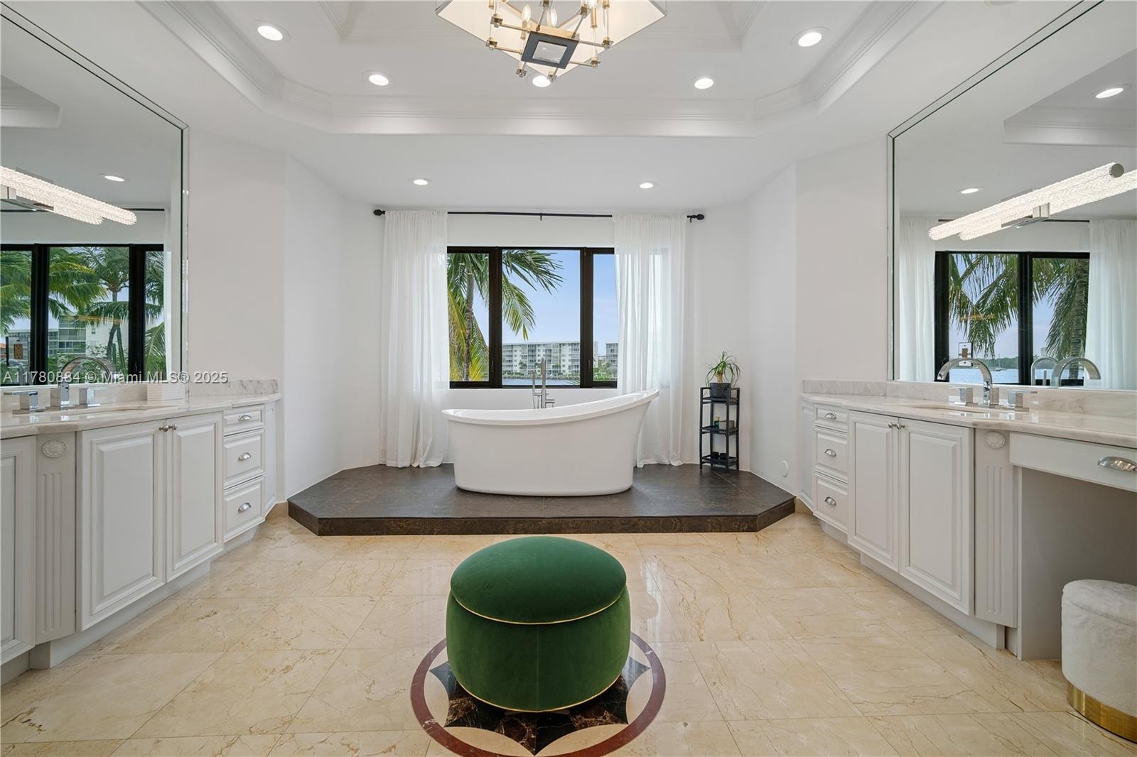 This spectacular waterfront home is located in the prestigious gated community of Eastern Shores. Boasting 7 bedrooms and 8.5 bathrooms, this luxurious property offers 7,729 square feet of living space. The home features floor-to-ceiling 30-foot windows that provide breathtaking views of the water. The interior of the home is tastefully furnished with Roche Bobois French furnishings, adding a touch of elegance to the space. The property also includes stunning amenities such as an infra-red sauna and steam room for ultimate relaxation. Outside, residents can indulge in their spacious backyard, which includes 216 feet of water frontage. The property also features a private 80-foot boat dock with ocean access, as well as a jet ski for water enthusiasts.