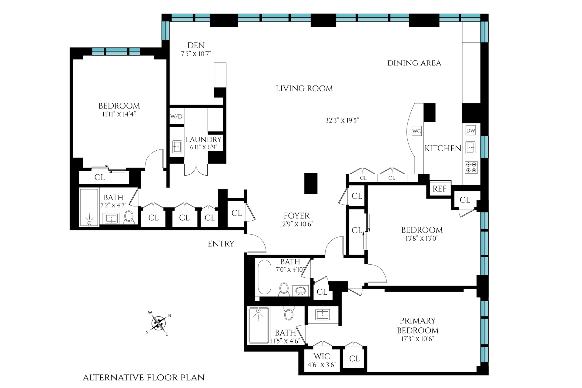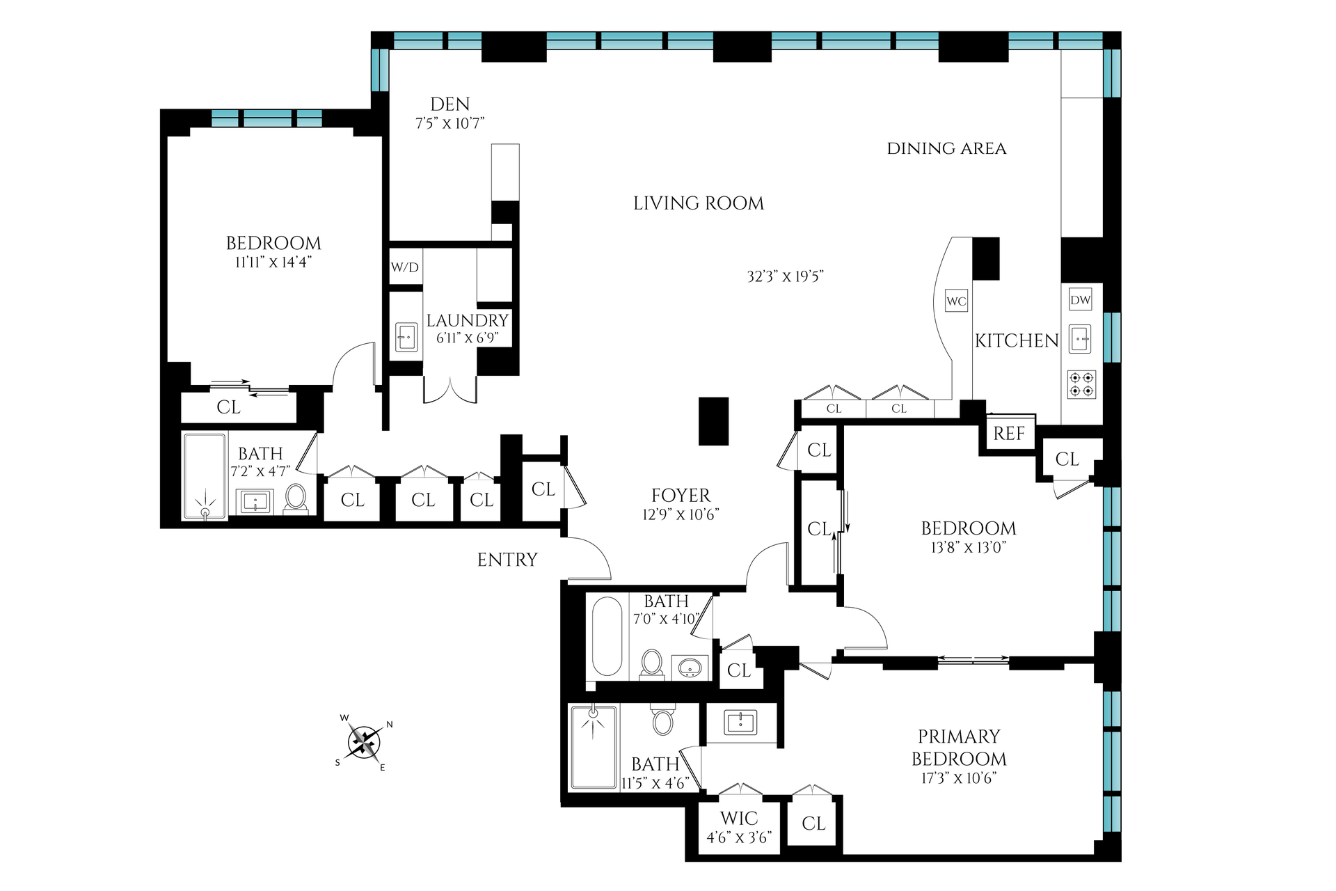 Residence 12HJ is an expansive corner home situated on a coveted high floor.