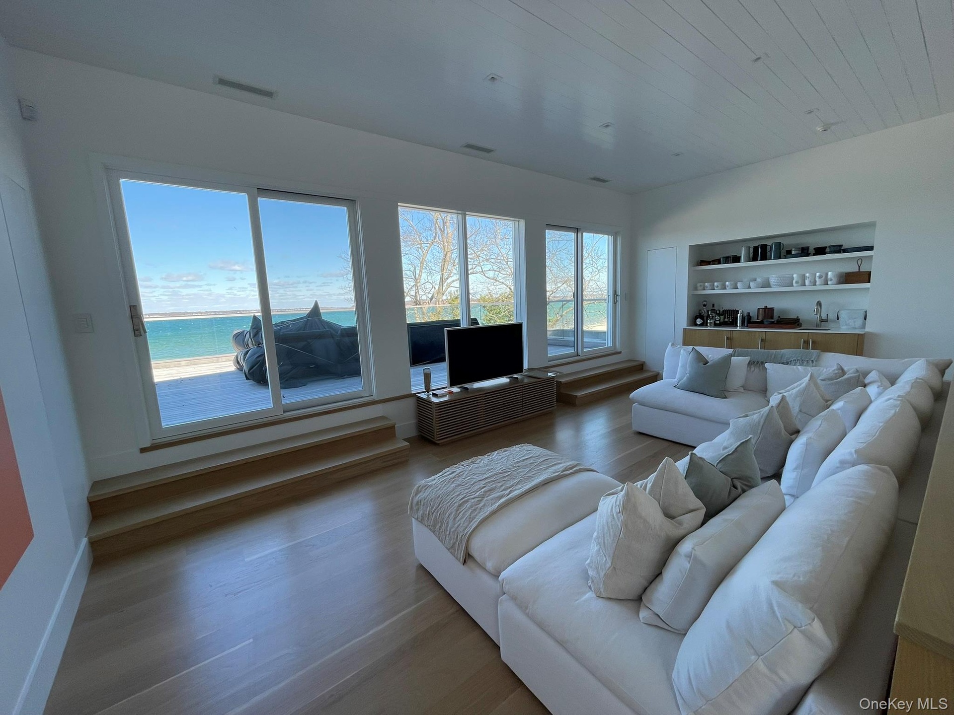 Experience the beauty of seasonal living on Southold Bay. This newly renovated contemporary bayfront estate home invites you to bask in its light and bright ambiance, perfect for relaxation and rejuvenation. With its Zen-inspired organic design, you’ll find comfort and privacy combined with the conveniences of modern life.