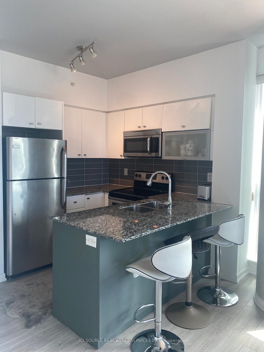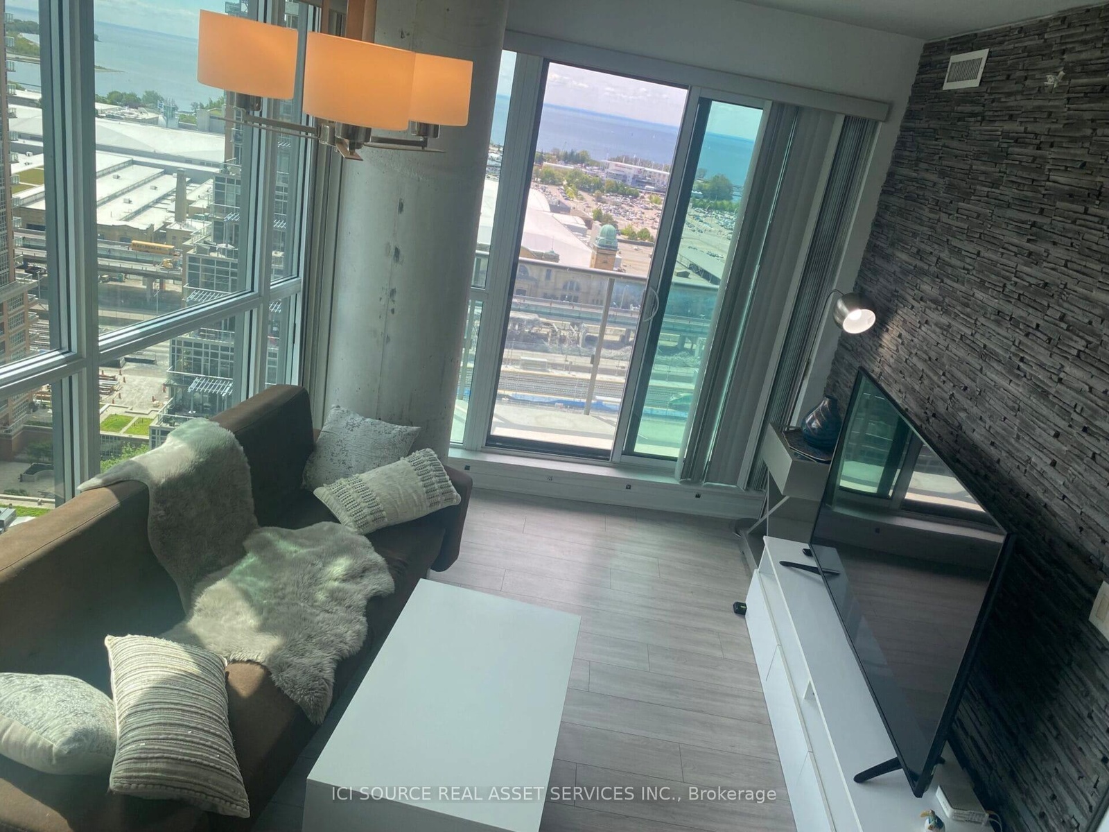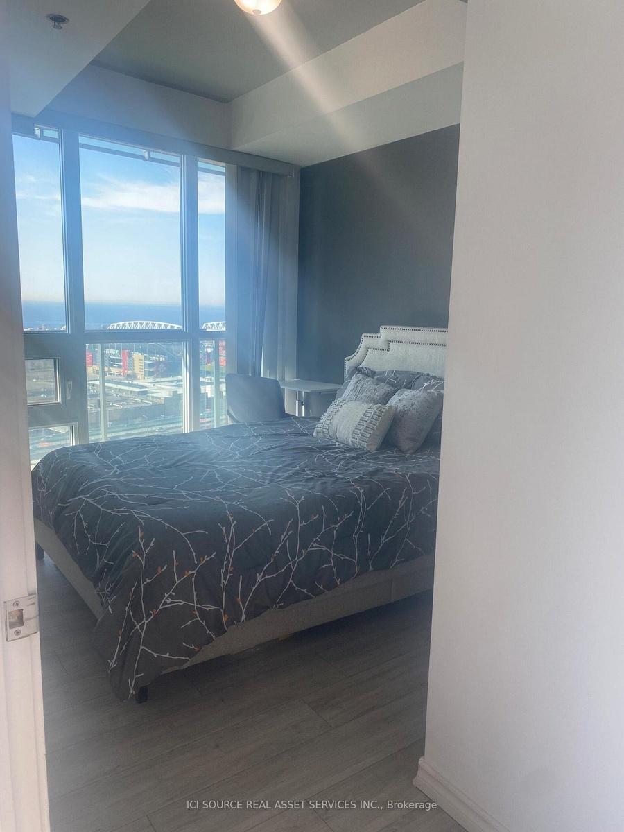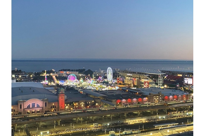 Whether you're looking for a place to call home or a solid investment opportunity, this condo delivers. Owner-Occupied Southeast Corner Unit with Stunning Panoramic Views! Experience elevated living in this meticulously maintained corner suite, bathed in natural light and offering panoramic views of the Toronto skyline, the iconic CN Tower, and the serene waters of Lake Ontario. This southeast-facing unit is bathed in natural light through floor-to-ceiling windows and features high ceilings, smooth finishes, and upgraded flooring throughout.The open-concept kitchen, dining, and living area offers seamless flow and unobstructed views, with a walk-out to a spacious 112 sq. ft. balcony  perfect for enjoying sunrises. Floor-to-ceiling windows and high ceilings for an airy space. Open-concept living with walk-out to balcony featuring south and east exposures. Functional layout with a dedicated den with a sliding door closet and in-suite laundry. Primary bedroom with spectacular lake and BMO Field views, walk-in closet, and ensuite bathroom. Second bedroom with striking CN Tower views & sliding door closet. Each bedroom fits a queen-sized bed comfortably. One additional 4-piece bathroom. Natural stone accent wall in the living area. Includes a large locker, 1 parking spot, and 1 bike storageUnbeatable location just steps from all essentials  Metro and No Frills. Surrounded by trendy restaurants, bars & banks. Minutes to waterfront trails, TTC & Exhibition GO Station. *For Additional Property Details Click The Brochure Icon Below*