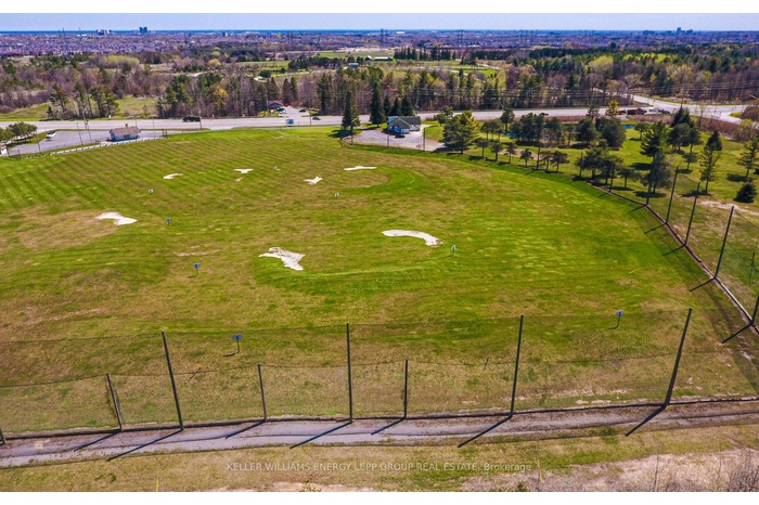 Attention investors, business owners, and developers! Earn some income with huge future potential. This prime piece of land on Taunton spans over 20 acres and is situated at the northeast corner of Taunton and Church, a high-growth area. Seconds away from all amenities and downtown Ajax, as well as easy access to the 407 , 412 and 401 highways, this property boasts amazing traffic flow. Currently operating as a golf range with 70 stations and 4 training holes, the property offers great potential purchaser to verify their own uses. The range includes bungalow, pro shop, commercial parking available, along with 2 drilled wells and 2 septic. The bungalow features a formal family room with broadloom and French doors, a separate dining room with a walk-out to the deck, and a kitchen with tile flooring and backsplash. The main level includes 3 bedrooms, while the loft serves as a 4th bedroom with broadloom floors, a 2-piece bath, window, and closet. The city will bring municipality water to the property estimated time by the city is Dec 2025