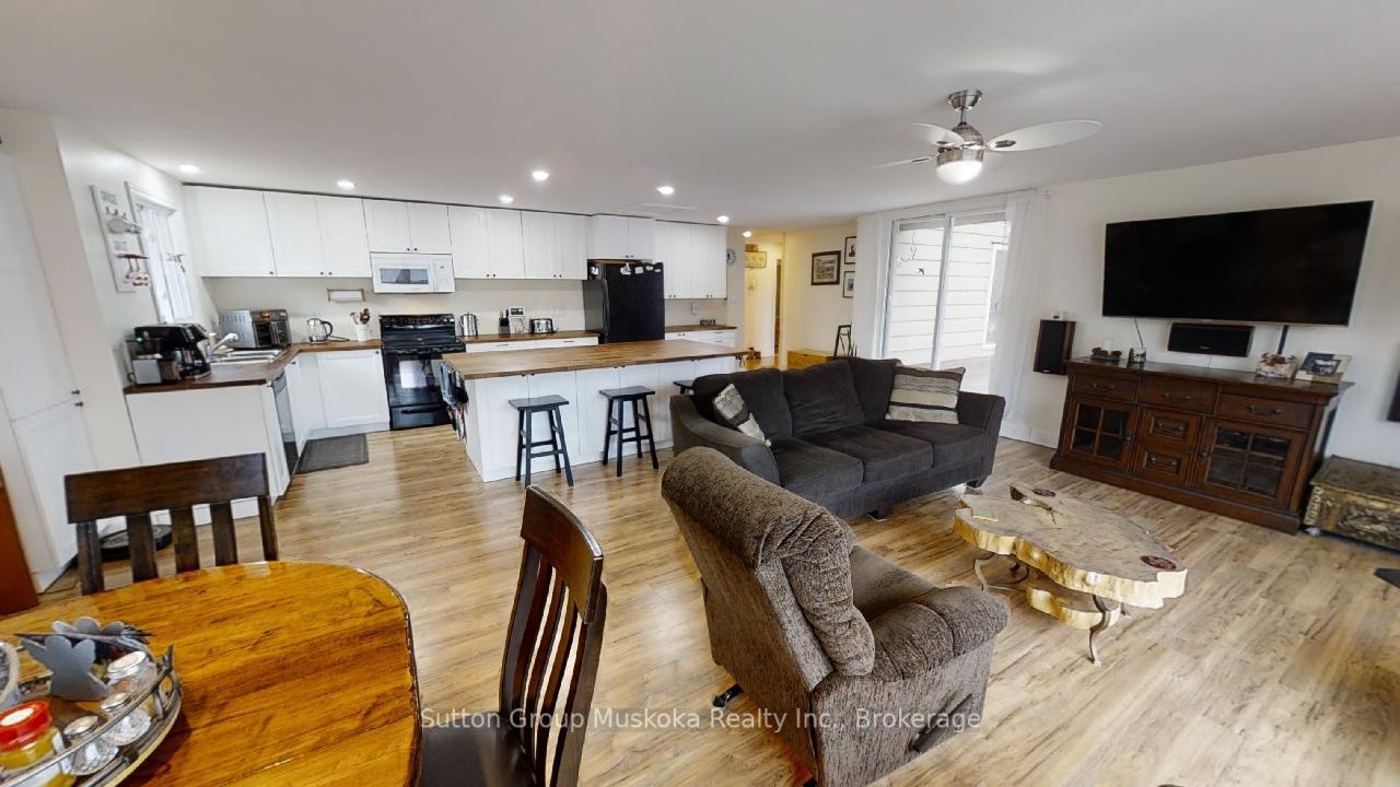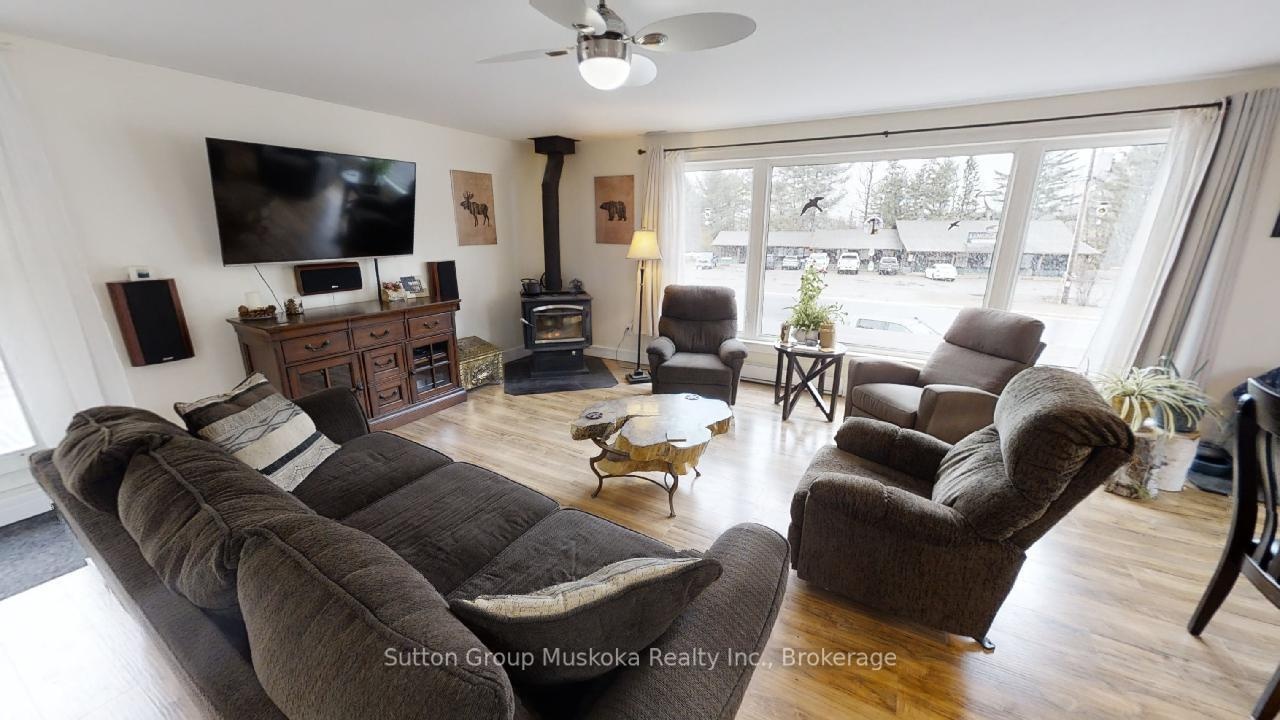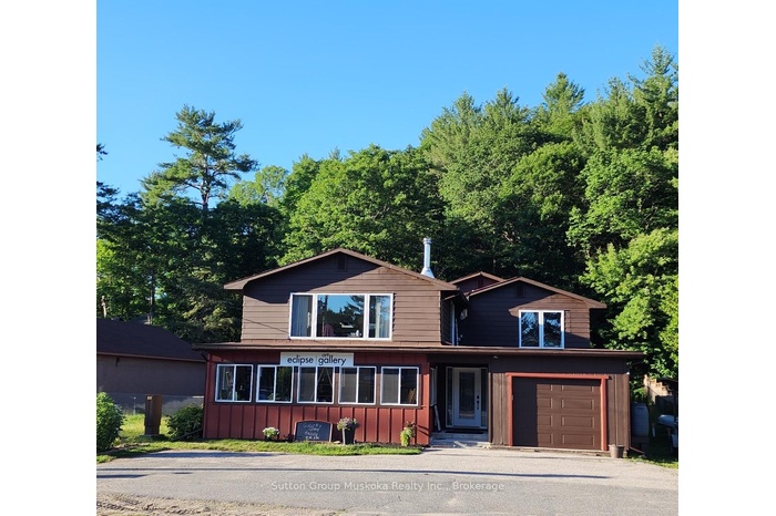 This property is located in the heart of Dwight, half way between Huntsville & Algonquin Provincial Park, within walking distance to beautiful sandy Dwight Beach on Lake of Bays. This building has been renovated, new spray foam insulation, all new windows, new electrical, new drilled well pump, hookup for generator (Generlink) just to name a few. The main level has a nice bright open retail/business commercial area, approx. 800sqft or could be used as another room, has a bright front porch area at the front of the building. In the back part, storage room with a 2pc bathroom for retail space if needed, plus a large approx. (40x36) work room or garage with side garage door, back door to back yard. There's also another room, currently used as a gym /sauna. The 2nd level has a 3 bedroom, 2 bathroom home. An open concept living/dining and kitchen with large island, huge windowns and patio door to bring the natural sunlight in. The livingroom has a woodstove to cozy up to on those winter evenings. A large master bedroom suite with walk-in closet and 2 pc ensuite. Main floor laundry as a bonus in this home. Back yard includes a deck, gazebo with hot tub area with gardens to enjoy the natural woods behind. There's a single car garage attached at the front of the building with more parking out front. This property is perfect for storefront/retail or self-employed buisiness. Lot's of opportunity and potential to live, work and play in beautiful Lake of Bays, Muskoka!
