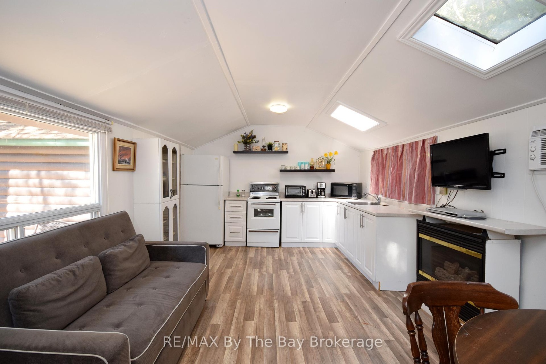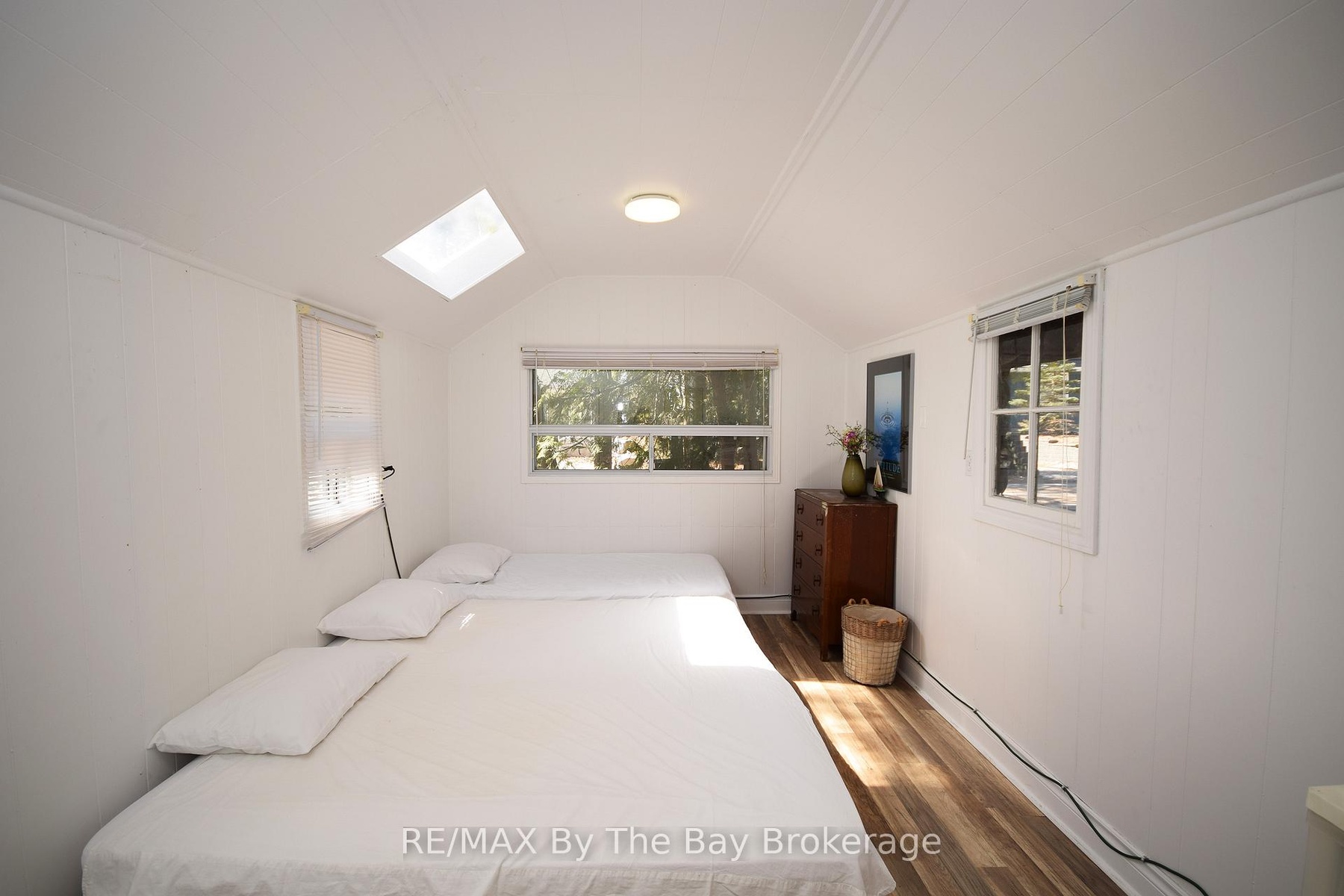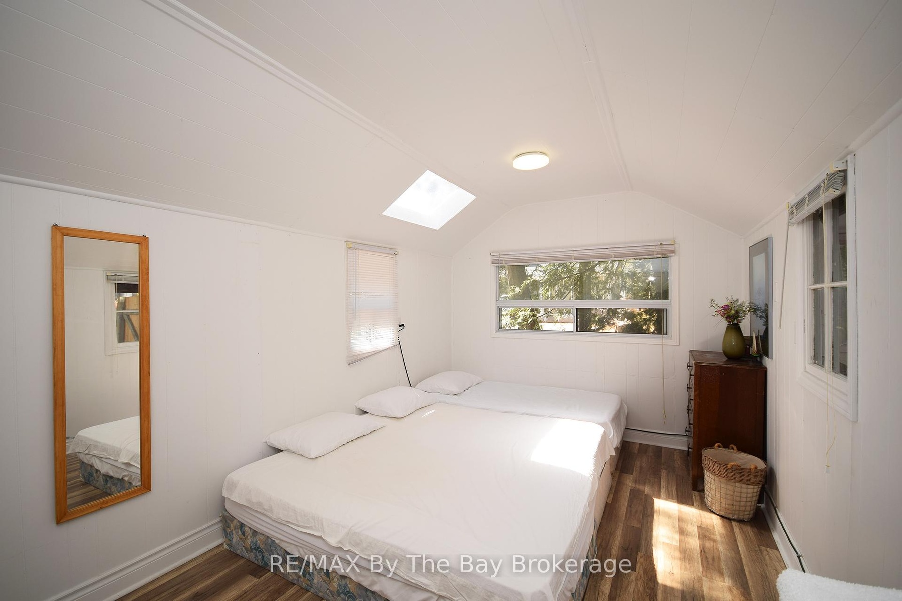 Charming Beachside Cottage in New Wasaga & Allenwood Beach. Spend your summers just steps from the sparkling shoreline of Georgian Bay in this cozy, character-filled cottage. Perfectly positioned with a close proximity to the beach, you will be able to hear the waves and see the colours of the sunset in the skyline from the front porch. Enjoy a beach day just moments from your door, or explore the walkable beach area surroundings. This efficient property features parking for up to four vehicles, a peaceful outdoor space, and an efficiently designed interior with an open-concept living room, kitchen, and dining nook. Inside, you'll find a bright and airy atmosphere with skylights, two wall-mounted A/C units, and a propane fireplace for cooler evenings. The cottage includes a private bedroom, a 3-piece bathroom, and the option for the cottage to come furnished for a move-in-ready experience. Two convenient storage sheds are also included. With the potential to rebuild or expand (pending municipal and NVCA approval and applicable variance), this property offers not only a relaxing escape but also future improvement possibilities. Just a short drive to the shops at Stonebridge Town Centre, the new Wasaga Beach Arena and Library, and the upcoming revitalization of Beach Area Onethis is a rare opportunity to own a piece of beachside property to start enjoying summer at the beach!