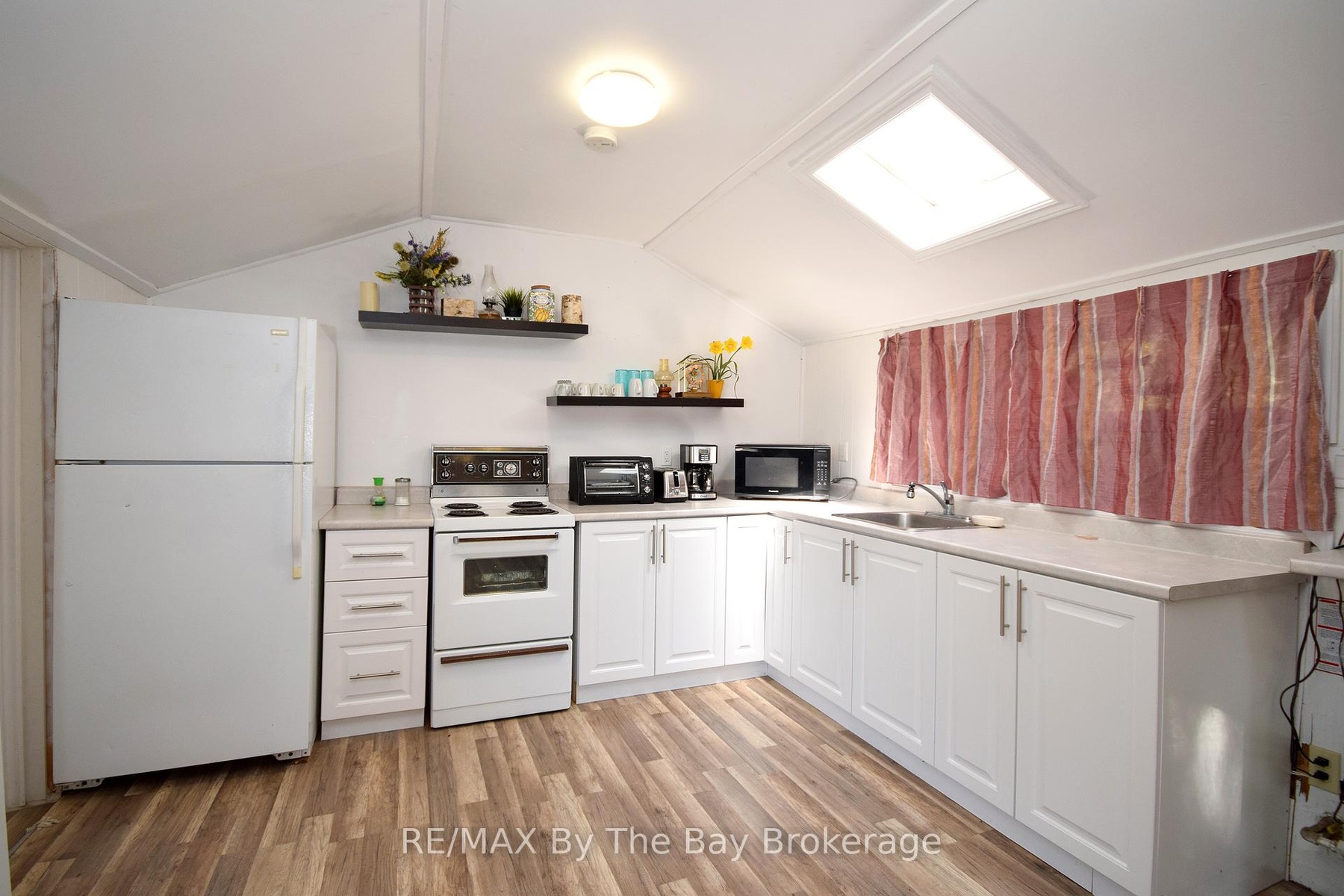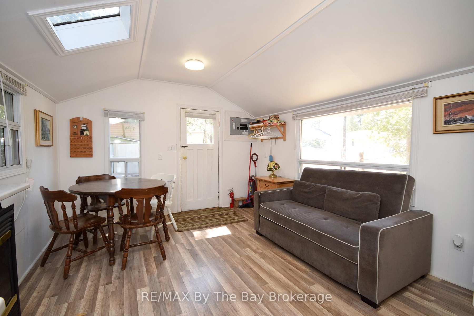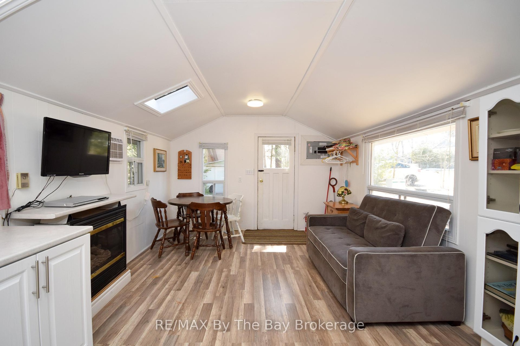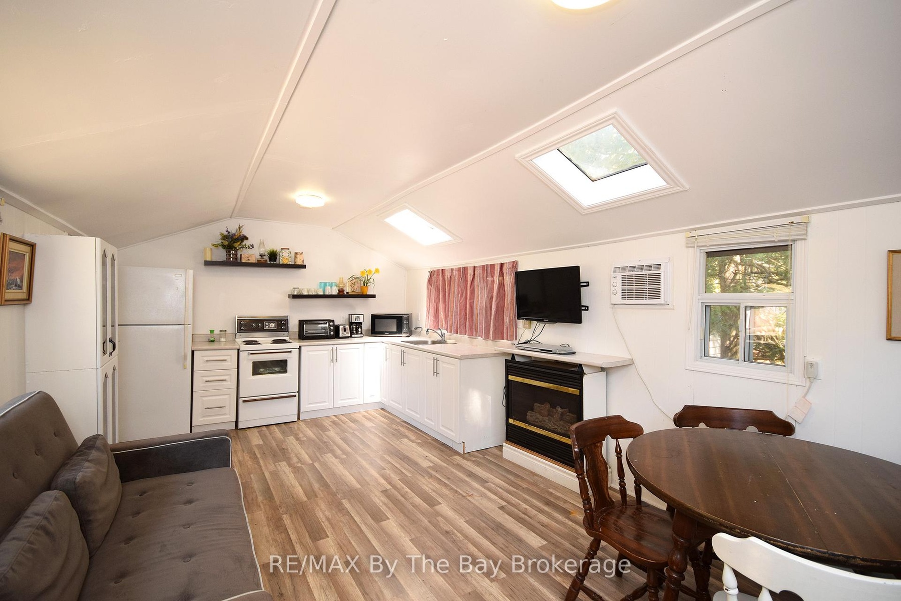 Charming Beachside Cottage in New Wasaga & Allenwood Beach. Spend your summers just steps from the sparkling shoreline of Georgian Bay in this cozy, character-filled cottage. Perfectly positioned with a close proximity to the beach, you will be able to hear the waves and see the colours of the sunset in the skyline from the front porch. Enjoy a beach day just moments from your door, or explore the walkable beach area surroundings. This efficient property features parking for up to four vehicles, a peaceful outdoor space, and an efficiently designed interior with an open-concept living room, kitchen, and dining nook. Inside, you'll find a bright and airy atmosphere with skylights, two wall-mounted A/C units, and a propane fireplace for cooler evenings. The cottage includes a private bedroom, a 3-piece bathroom, and the option for the cottage to come furnished for a move-in-ready experience. Two convenient storage sheds are also included. With the potential to rebuild or expand (pending municipal and NVCA approval and applicable variance), this property offers not only a relaxing escape but also future improvement possibilities. Just a short drive to the shops at Stonebridge Town Centre, the new Wasaga Beach Arena and Library, and the upcoming revitalization of Beach Area Onethis is a rare opportunity to own a piece of beachside property to start enjoying summer at the beach!
