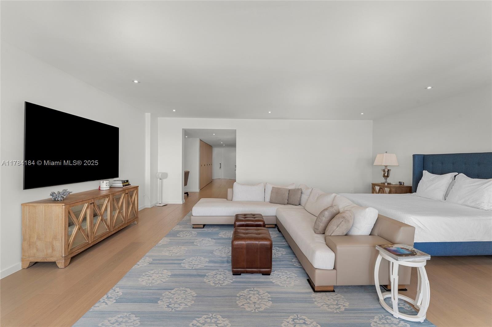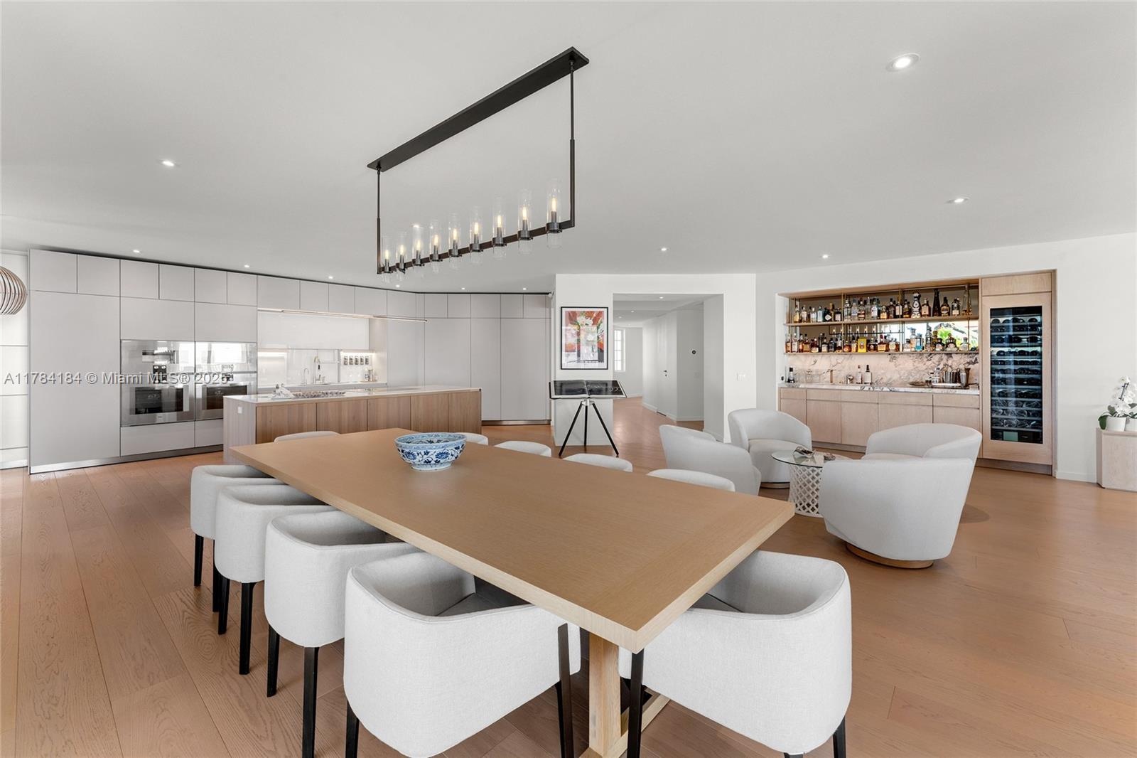 This stunning, completely renovated 3BR/4.5BA Oceanside corner unit spans 3,959 SF & offers a wraparound terrace w/breathtaking sunrises over the Atlantic Ocean & sunsets over the Miami skyline. The Interior features hardwood floors, designer finishes, & custom lighting throughout. An open east-west flow-through layout surrounded by floor-to-ceiling glass, seamlessly connects the living & dining areas to the expansive 1,721SF terrace w/outdoor seating & dining. Bulthaup kitchen sports top-tier Gaggenau appliances, a large island & is complemented by a custom wet bar. A luxurious principal suite features terrace access, ocean views, dual walk-in closets, & dual spa-style bathrooms. Two additional bedrooms both w/ensuite baths, & share a balcony with Miami skyline & Fisher golf course views.