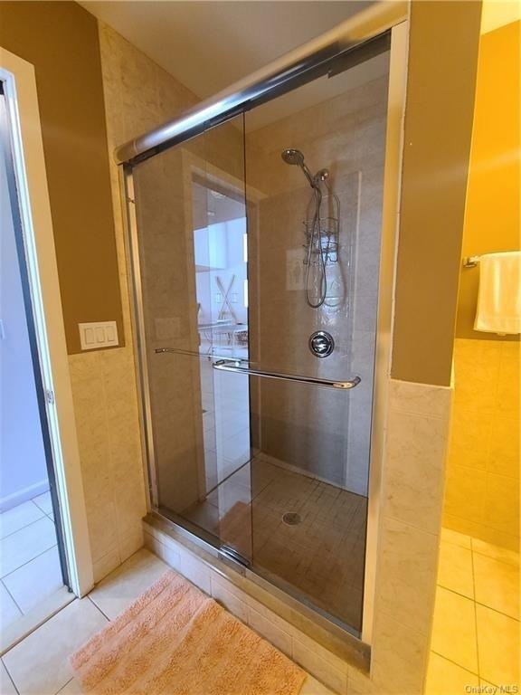 - Recreation room featuring light tile patterned floors, a high ceiling, and baseboards