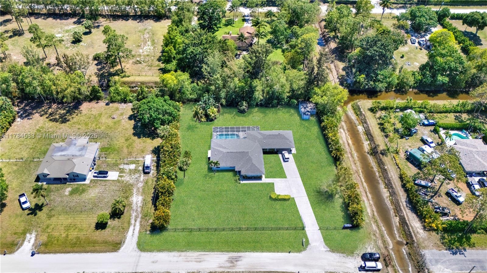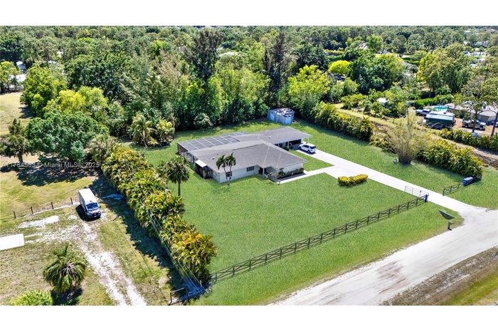 This beautifully maintained home comes with a spacious guest house featuring 1 bedroom and 1 bathroom, perfect for visitors or extended family. The house has been freshly painted inside an out. All bathrooms have been recently remodeled an the roof was instilled in 2024 Large kitchen with ample cabinet space overlooking a serene saltwater pool, which is screened in for year-round enjoyment. The expansive lot features a lovely avocado tree and canal at the back, offering both privacy and tranquility. This property is fully fenced, with plenty of parking space. Horses are welcome, making it an ideal location for equestrian enthusiasts Located on a quiet street, this home is a perfect retreat while still being close to local amenities Make this charming property your new home! No association