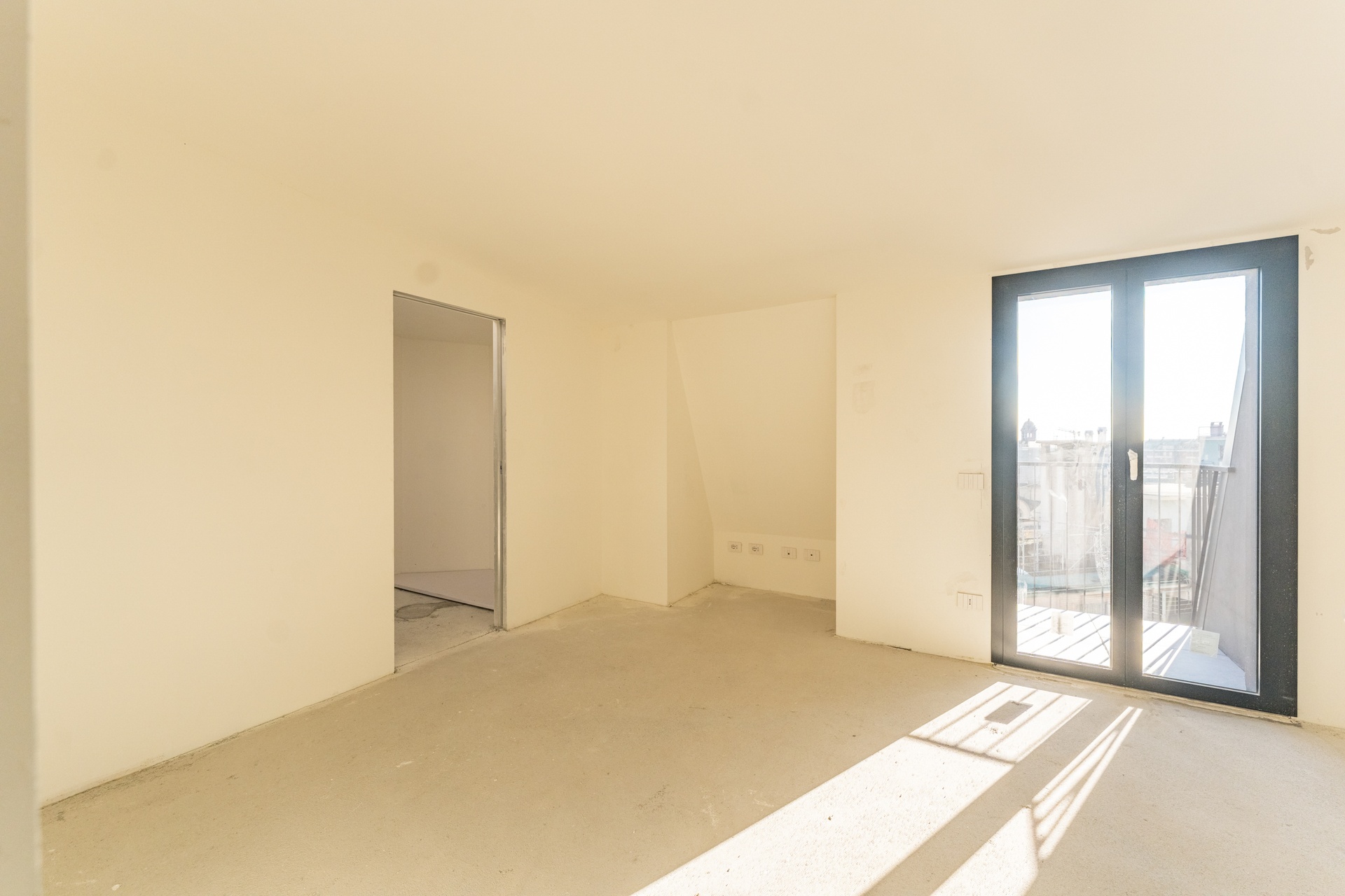 Completely reconstructed with a new independent steel structure, the penthouse is crowned by an elegant French-style roof clad in gunmetal-colored sheet metal.
