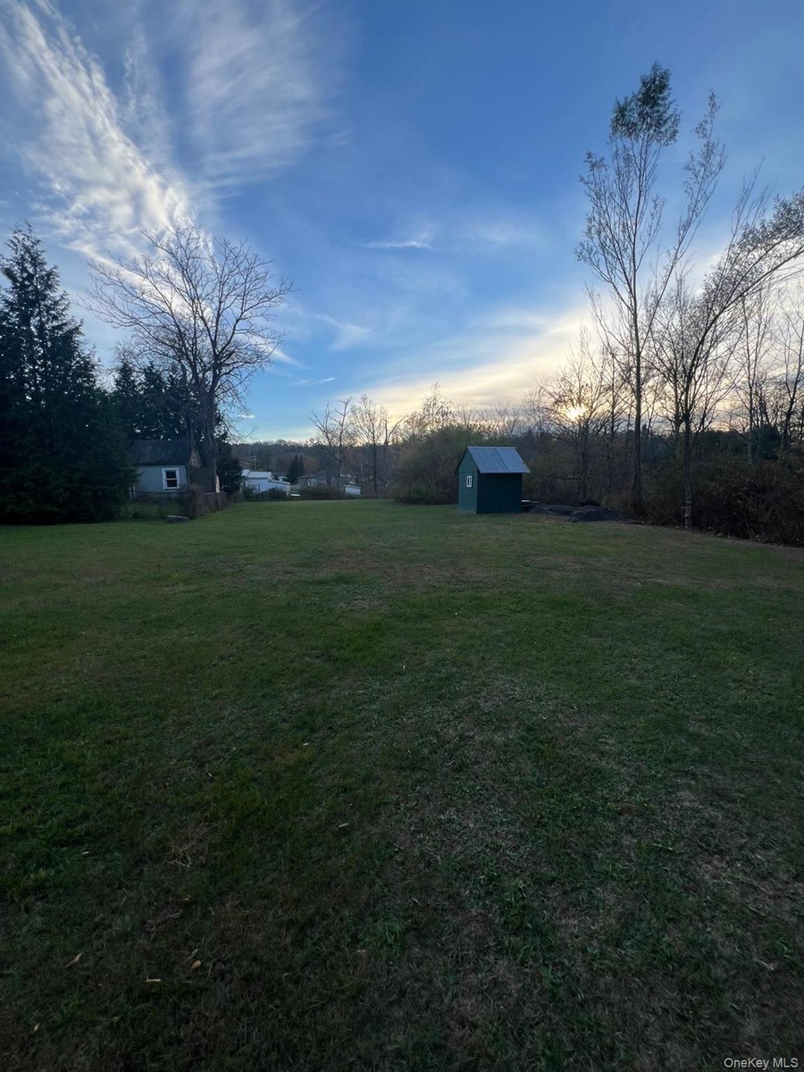 - View of green lawn featuring an outdoor structure